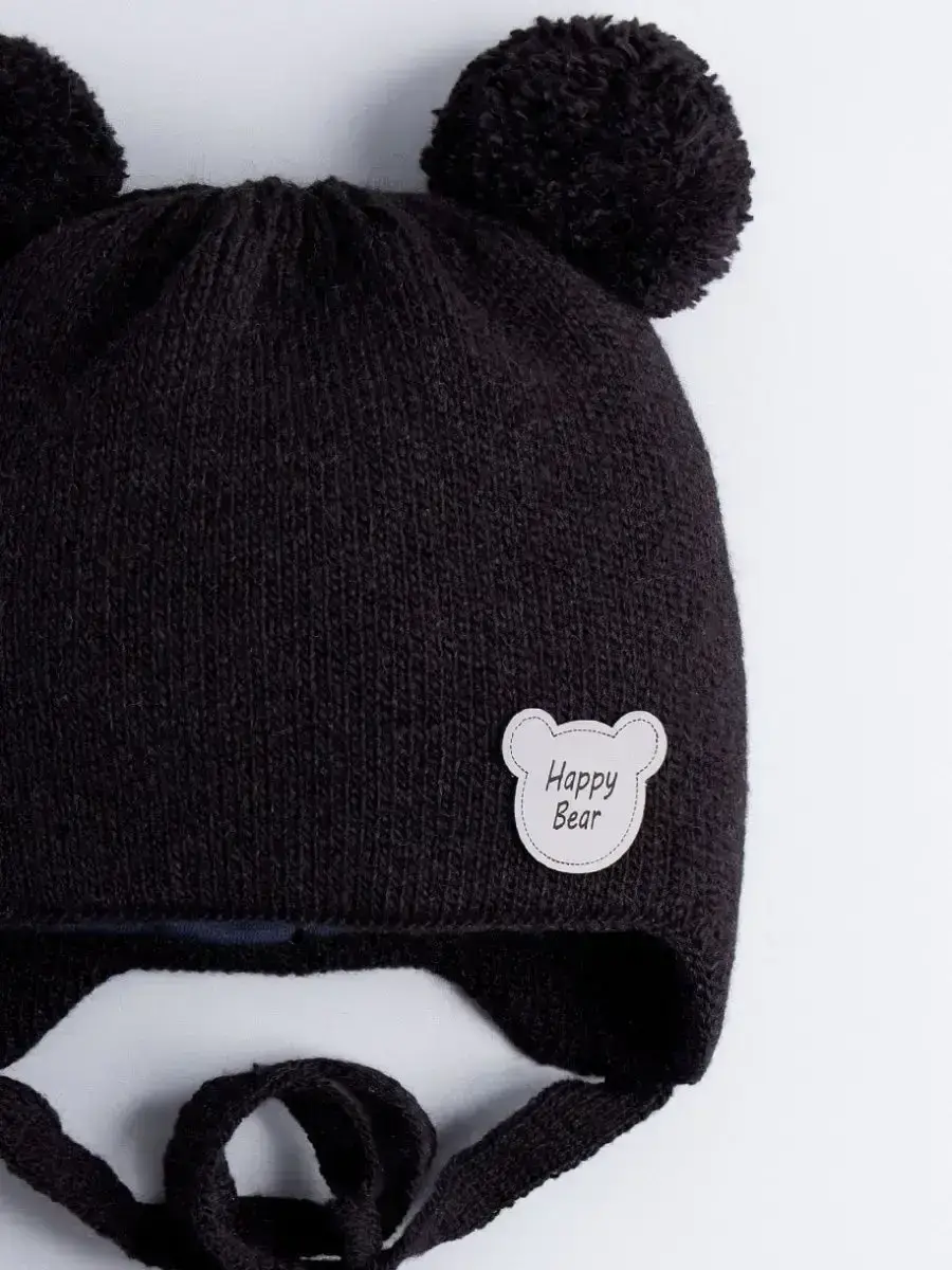 Вязаная демисезонная детская шапка на завязках — лучшее решение на осень и теплую зиму для вашего ребёнка. Детская шапка не только защитит от холода и ветра, но и станет красивым дополнением стильного образа! Модель с двумя помпонами подойдет как мальчику, так и девочке благодаря большому выбору расцветок. Широкий размерный ряд поможет выбрать демисезонную шапочку для детей от одного месяца до десяти лет. Отличный вариант на выписку для новорожденных. Теплая вязаная шапочка украшена кожаной биркой с надписью «HAPPY BEAR» и двумя красивыми помпонами в виде ушек медвежонка. Удобный крой изделия хорошо закрывает шею и лоб, а мягкие завязки плотно фиксируют шапочку. Шапочка для малышей дополнена подкладкой из натурального хлопка, что обеспечивает комфорт и не дает голове потеть, снижая риск простудиться. Детская шапочка рассчитана на температурный режим от +5 до -10 °C. Идеально подходит для активного отдыха на свежем воздухе и повседневной носки в детском саду или школе. Благодаря гипоаллергенному составу пряжа не вызывает раздражения на чувствительной коже ребенка.