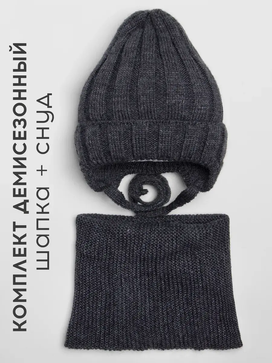 Демисезонная шапка для девочек и мальчиков со снудом — это идеальный выбор для холодного времени года. Незаменимый детский комплект для осени и теплой зимы. Шапка и снуд для детей выполнены вязкой "лапша" из мягкой качественной пряжи (в составе гипоаллергенный акрил), которая обеспечивает комфорт и защиту от холода. Благодаря большому количеству расцветок модель подходит как мальчикам, так и девочкам. Шапочка на завязках хорошо фиксируется и предотвращает сползание. Плотный отворот защищает уши и шею от сильного ветра. Отсутствие декора и фурнитуры делает этот дуэт универсальным для создания модных образов. Изделие снабжено хлопковой подкладкой, которая отлично держит тепло и не дает голове ребенка вспотеть. Снуд детский выполнен в том же стиле, что и шапочка, создавая гармоничный комплект. Он легко надевается через голову и защищает шею от холодного воздуха. Благодаря эластичности материала, снуд не стесняет движений и комфортно сидит на ребенке. Широкий размерный ряд позволит выбрать головной убор как для малышей, так и для подростков с 9 месяцев до 10 лет. Вязаный детский набор станет прекрасным вариантом для тех, кто ищет стильный и практичный аксессуар для своих детей! Шапка осенняя детская - незаменимая вещь для школы, детского садика и прогулок на свежем воздухе.