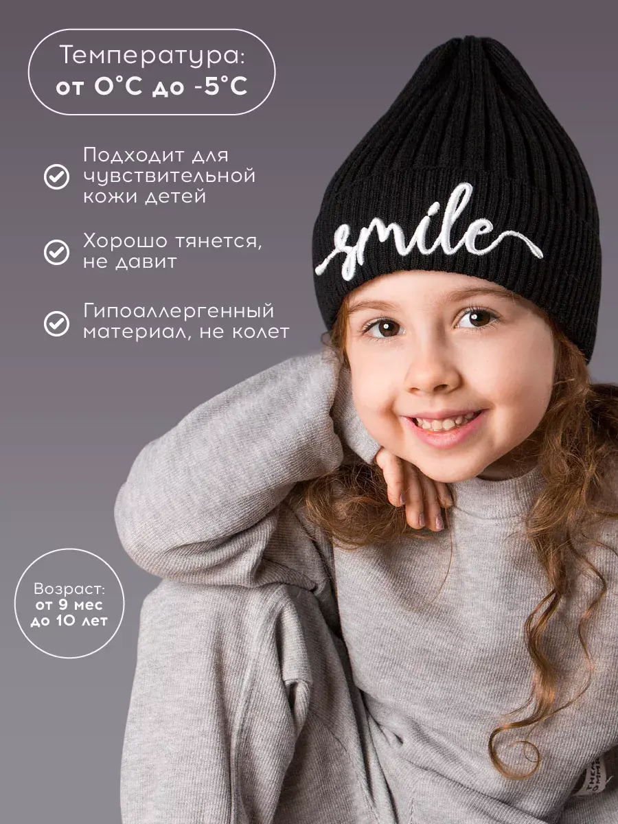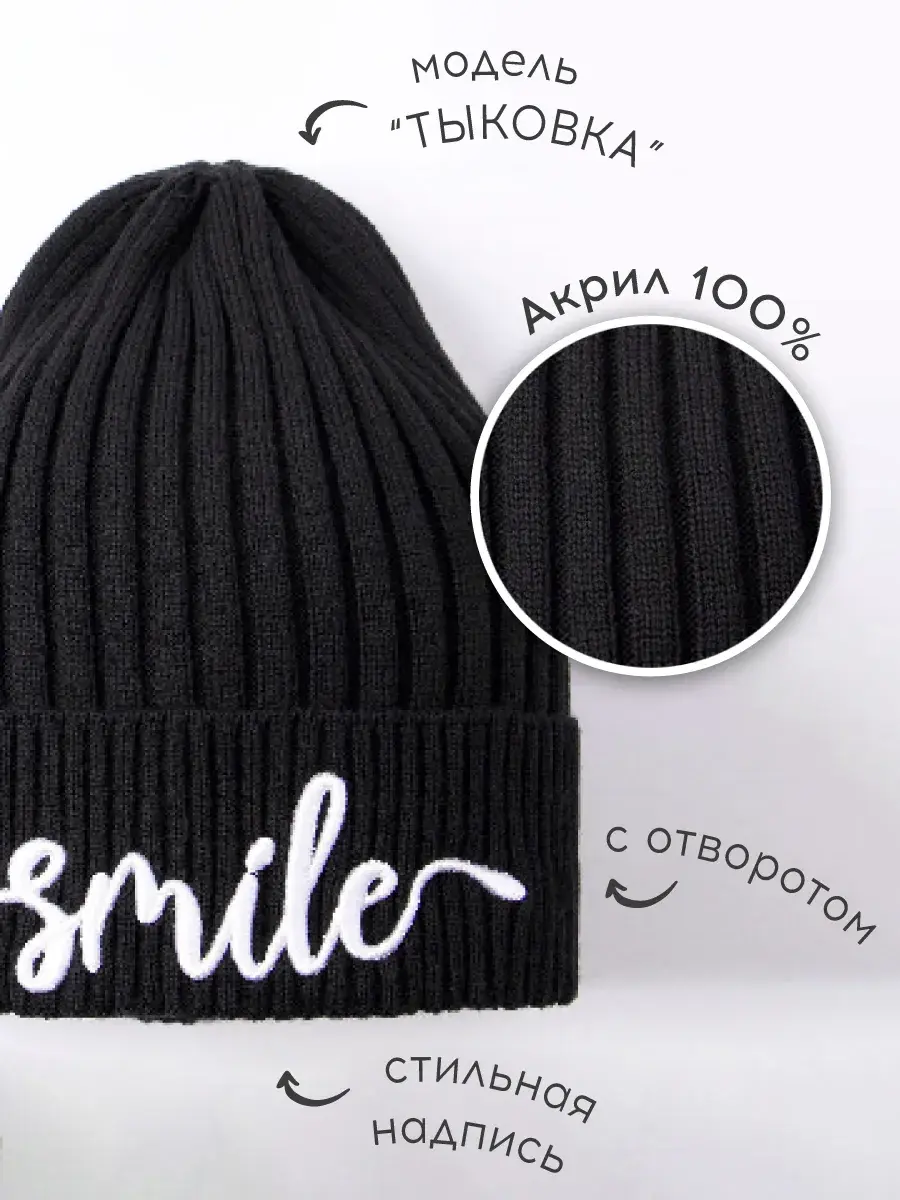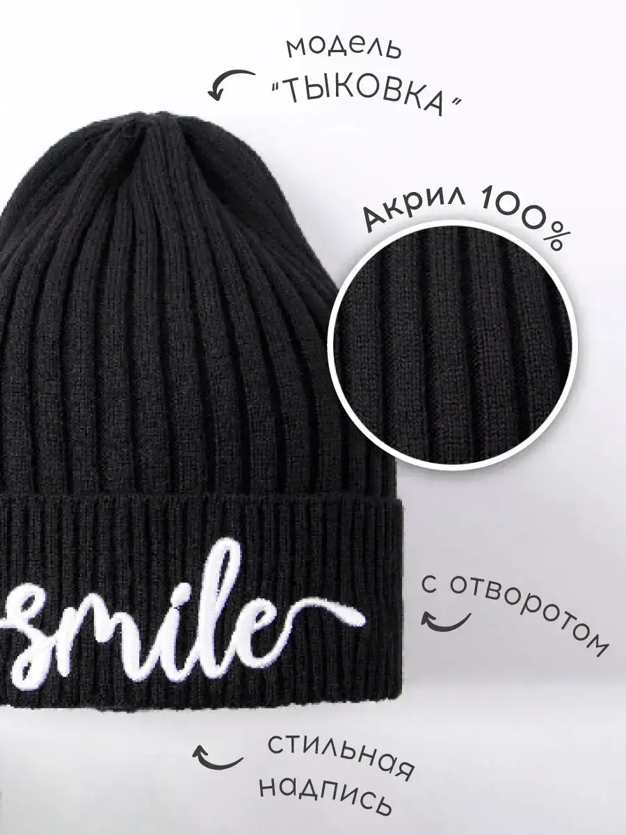 Шапка для девочки вязаная с модным дизайном станет прекрасным дополнением к стильному образу на эту осень. Головной убор для девочки в форме тыковки - хит этого сезона! Благодаря большому разнообразию цветов детская шапка хорошо сочетается с любым стилем и отлично впишется в гардероб каждой модницы! Модель хорошо сидит на голове и защищает ее от холода и ветра. Шапочка осенняя выполнена без подкладки, но не смотря на на это она очень мягкая и находиться в ней длительное время очень комфортно. Изделие выполнено из пряжи высокого качества (вязка лапша), поэтому сохранит отличный внешний вид даже после длительной носки. Декорирована тонкая шапка для девочки вышитой надписью "SMILE", что добавляет индивидуальности образу малышки. Наш головной убор - идеальное решение для школы, детского садика и прогулок на свежем воздухе.