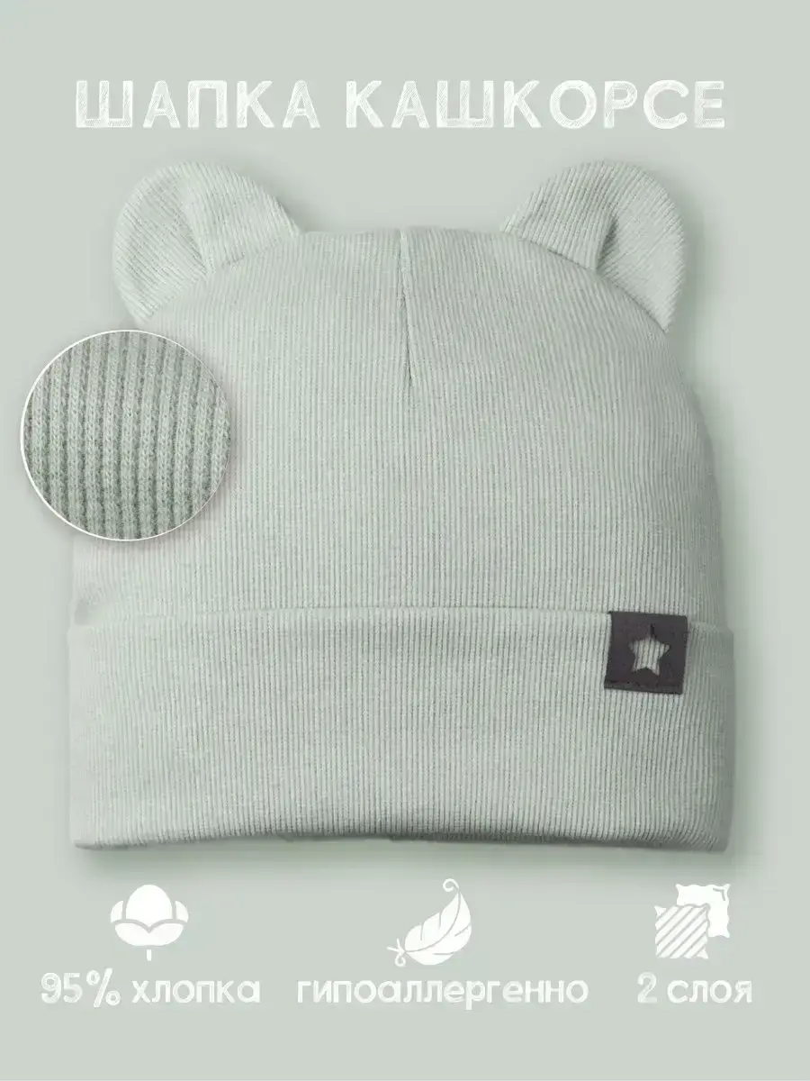 Шапка детская с ушками мишки - это прекрасный базовый вариант для детей на осень и теплую зиму. Детский головной убор без завязок отлично подойдет как для мальчика, так и для девочки. Она выполнена из нежнейшего трикотажа кашкорсе (в рубчик), поэтому малышу будет в ней очень комфортно и удобно. Демисезонная модель имеет широкий размерный ряд для детей от трех месяцев до десяти лет. Изделие также идеально для новорожденных на выписку. Чепчик без завязок декорирован модной нашивкой из искусственной кожи в виде звезды. Качественный пошив и прекрасно обработанные швы делают данную модель очень комфортной в носке, что делает ее идеальной шапкой для школы. Шапочка для малыше хорошо сидит на голове, не оставляет следов на коже и не сползает на лоб во время активных игр. Шапка бини для мальчика незаменима для прогулок на свежем воздухе, походов в детский сад и школу. Благодаря безопасному высококачественному составу (хлопок 95%, лайкра 5%) шапка для девочки демисезонная надолго сохранит свой первоначальный вид.