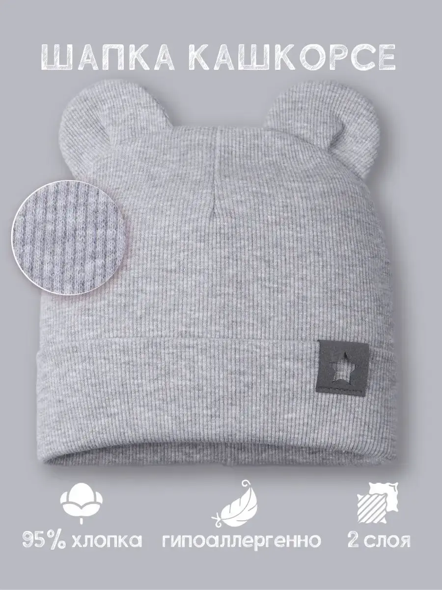 Шапка детская с ушками мишки - это прекрасный базовый вариант для детей на осень и теплую зиму. Детский головной убор без завязок отлично подойдет как для мальчика, так и для девочки. Она выполнена из нежнейшего трикотажа кашкорсе (в рубчик), поэтому малышу будет в ней очень комфортно и удобно. Демисезонная модель имеет широкий размерный ряд для детей от трех месяцев до десяти лет. Изделие также идеально для новорожденных на выписку. Чепчик без завязок декорирован модной нашивкой из искусственной кожи в виде звезды. Качественный пошив и прекрасно обработанные швы делают данную модель очень комфортной в носке, что делает ее идеальной шапкой для школы. Шапочка для малыше хорошо сидит на голове, не оставляет следов на коже и не сползает на лоб во время активных игр. Шапка бини для мальчика незаменима для прогулок на свежем воздухе, походов в детский сад и школу. Благодаря безопасному высококачественному составу (хлопок 95%, лайкра 5%) шапка для девочки демисезонная надолго сохранит свой первоначальный вид.