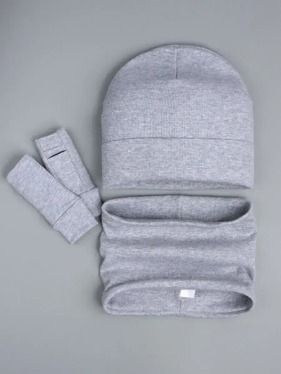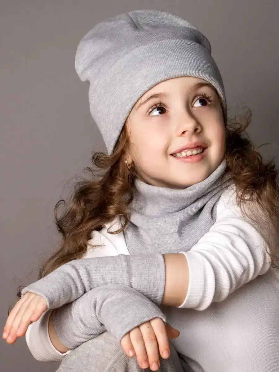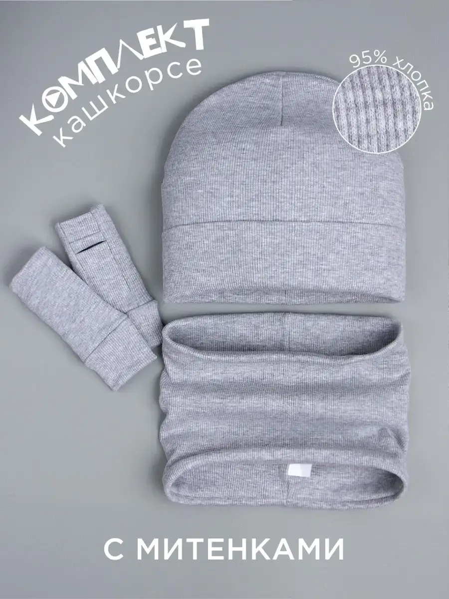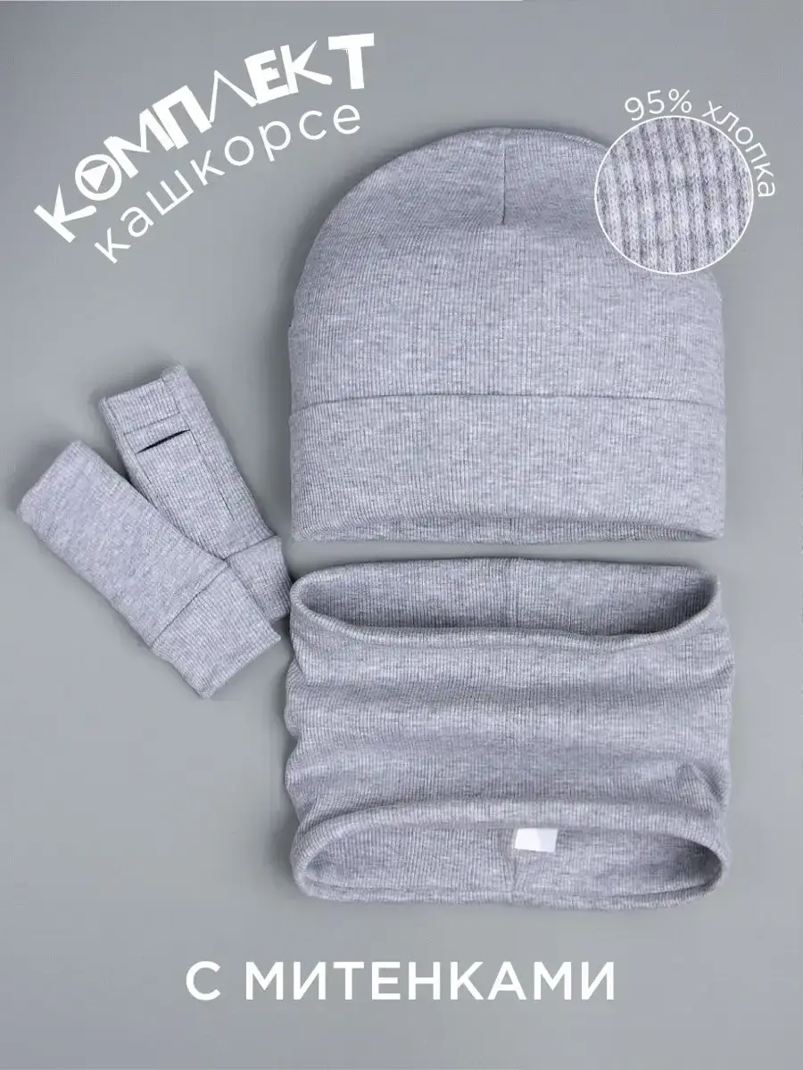 Демисезонная детская шапка со снудом и митенками идеальна для прохладной погоды на осень и теплую зиму. Головной убор для детей, шарф и удлиненные перчатки без пальцев выполнены из кашкорсе - очень мягкой и приятной на ощупь ткани (в рубчик). Шапочка для девочек хорошо облегает голову, но при этом не сползает на глаза во время активных игр. Двухслойный детский снуд складывается в два раза, его можно носить как под капюшон, так и под верхней одеждой. Митенки для малышки не сковывают движений, оставляя возможность свободно использовать телефон и другие гаджеты. Набор для малышей незаменим для ежедневного ношения и школьных будней. Осенний детский набор в самых трендовых цветах подойдет как для мальчика, так и для девочки. Детский набор из шапочки и снуда с митенками - это лучшее вложение для любой школьного базового гардероба! В нашем магазине представлен также большой ассортимент аксессуаров для детей на осенний сезон! Сделано в России.