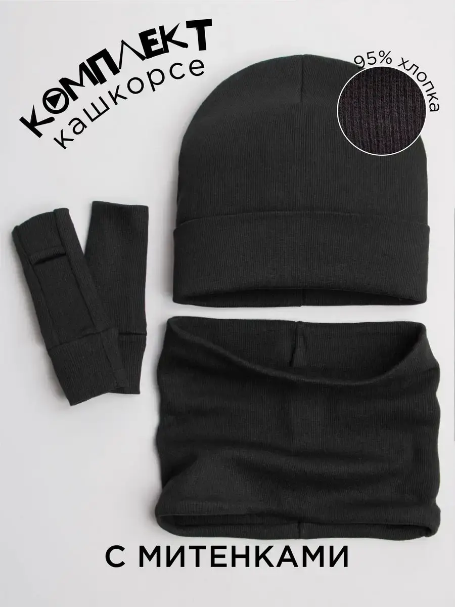 Демисезонная детская шапка со снудом и митенками идеальна для прохладной погоды на осень и теплую зиму. Головной убор для детей, шарф и удлиненные перчатки без пальцев выполнены из кашкорсе - очень мягкой и приятной на ощупь ткани (в рубчик). Шапочка для девочек хорошо облегает голову, но при этом не сползает на глаза во время активных игр. Двухслойный детский снуд складывается в два раза, его можно носить как под капюшон, так и под верхней одеждой. Митенки для малышки не сковывают движений, оставляя возможность свободно использовать телефон и другие гаджеты. Набор для малышей незаменим для ежедневного ношения и школьных будней. Осенний детский набор в самых трендовых цветах подойдет как для мальчика, так и для девочки. Детский набор из шапочки и снуда с митенками - это лучшее вложение для любой школьного базового гардероба! В нашем магазине представлен также большой ассортимент аксессуаров для детей на осенний сезон! Сделано в России.