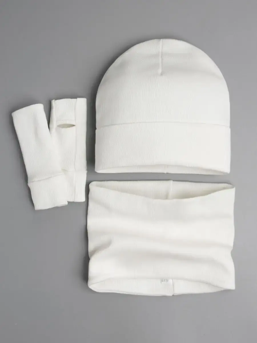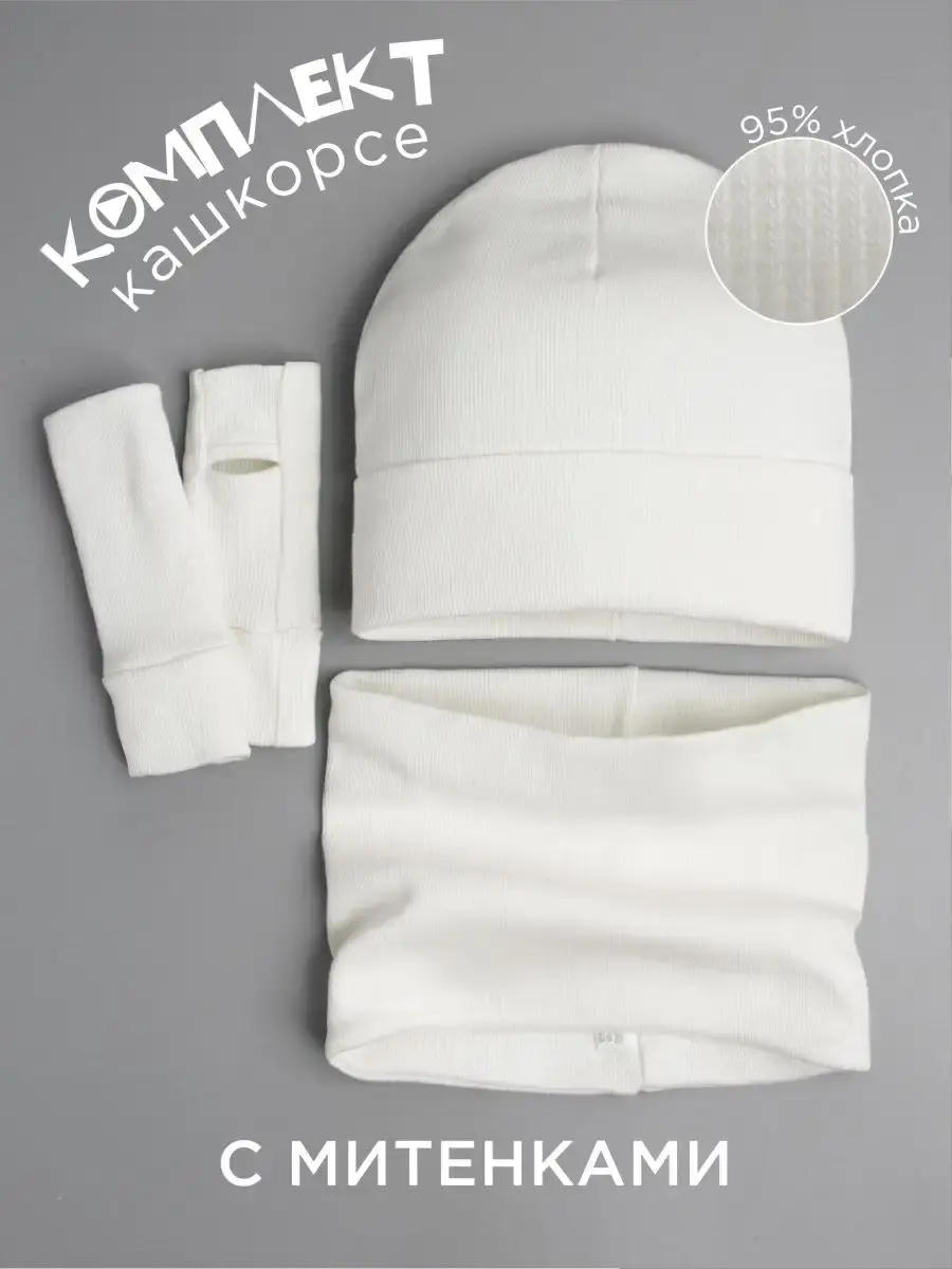 Демисезонная детская шапка со снудом и митенками идеальна для прохладной погоды на осень и теплую зиму. Головной убор для детей, шарф и удлиненные перчатки без пальцев выполнены из кашкорсе - очень мягкой и приятной на ощупь ткани (в рубчик). Шапочка для девочек хорошо облегает голову, но при этом не сползает на глаза во время активных игр. Двухслойный детский снуд складывается в два раза, его можно носить как под капюшон, так и под верхней одеждой. Митенки для малышки не сковывают движений, оставляя возможность свободно использовать телефон и другие гаджеты. Набор для малышей незаменим для ежедневного ношения и школьных будней. Осенний детский набор в самых трендовых цветах подойдет как для мальчика, так и для девочки. Детский набор из шапочки и снуда с митенками - это лучшее вложение для любой школьного базового гардероба! В нашем магазине представлен также большой ассортимент аксессуаров для детей на осенний сезон! Сделано в России.