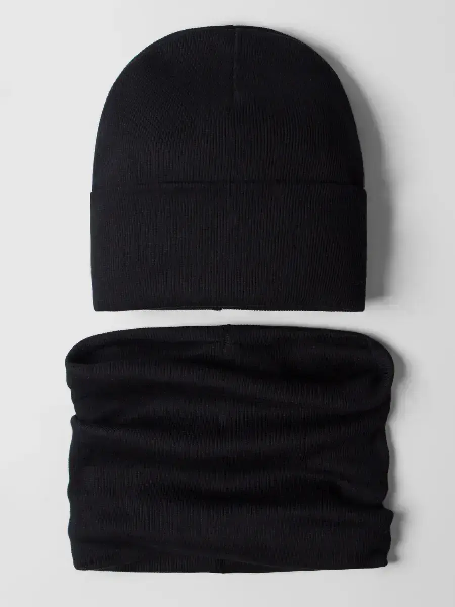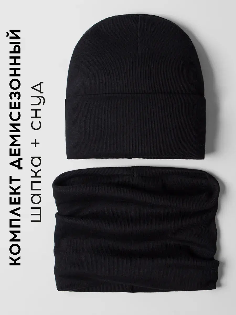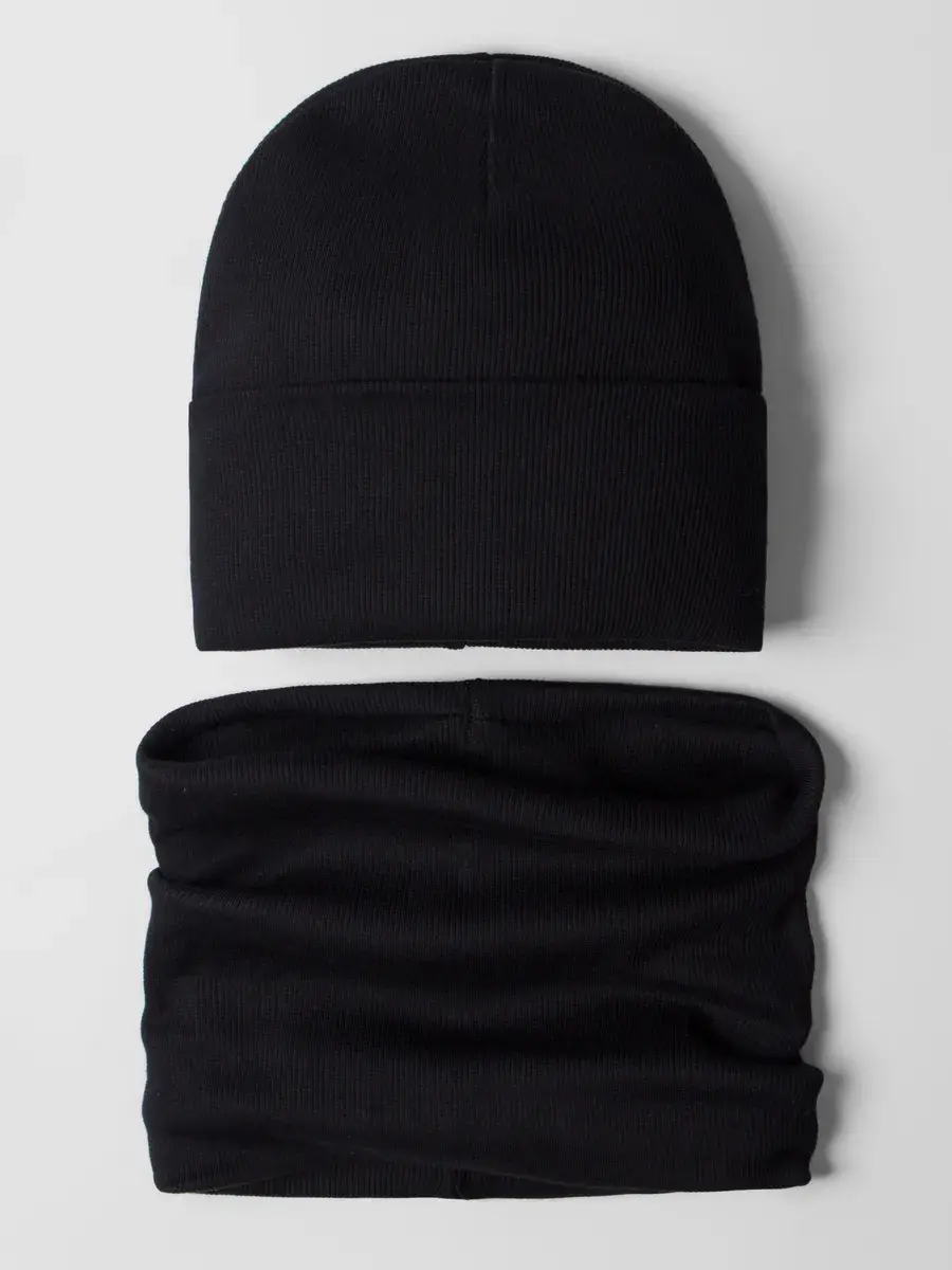 ZO-013/00-0035337/Шапка трикотажная детская и снуд, черный