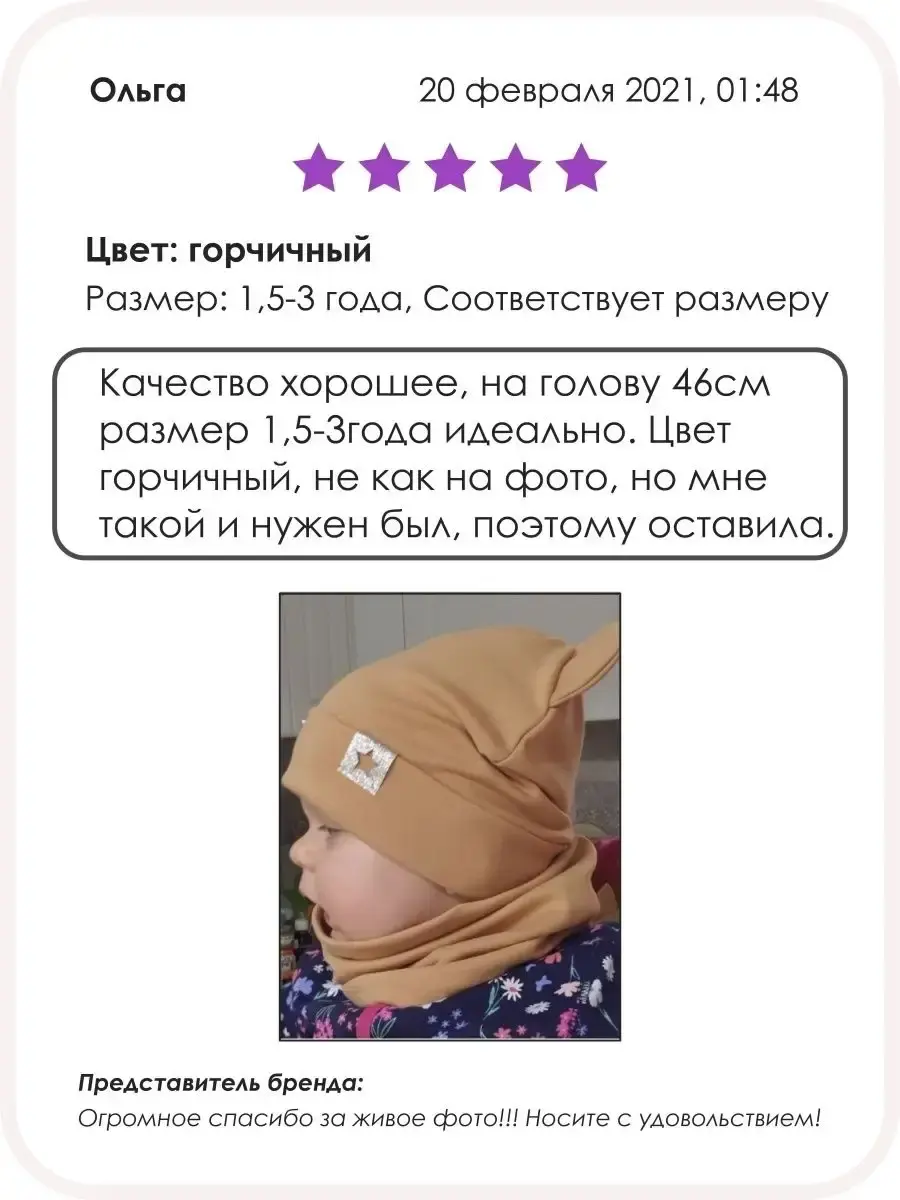 Шапка детская и снуд из плотного трикотажа станут прекрасным вариантом для детей на осень и теплую зиму. Осенний дуэт создаст неповторимый образ, а его универсальный дизайн подойдет как для мальчика, так и для девочки. Шапочка двойная представлена в нескольких размерах для малышей от 1 мес до 10 лет. Демисезонный комплект для девочки от российского бренда РусБубон - это незаменимый аксессуар для активного отдыха на свежем воздухе и повседневной носки в школу и детский сад. Головной убор для ребенка хорошо сидит на голове, не сползает на глаза, а широкий отворот закрывает уши и защищает от ветра. Снуд отлично тянется, его можно одевать как под капюшон верхней одежды, так и просто на шею. Приятная ткань не колется и не натирает, а гипоаллергенный материал не вызовет раздражения на чувствительной коже ребенка. Точно подобранная цветовая гамма сочетается с любым нарядом: теплым классическим пальто или легкой спортивной курткой. Благодаря мягкому полотну высокого качества изделие не потеряют свою форму и цвет даже после длительного использования.