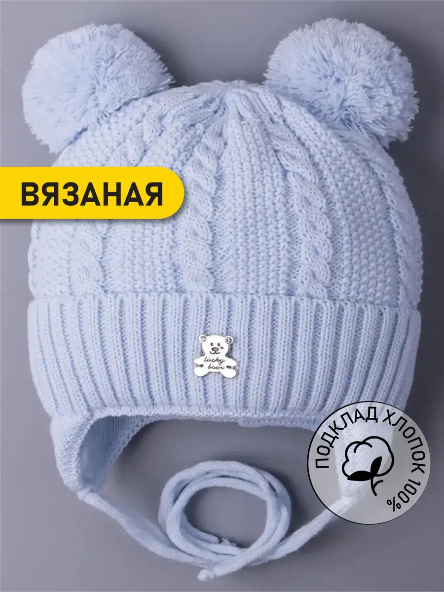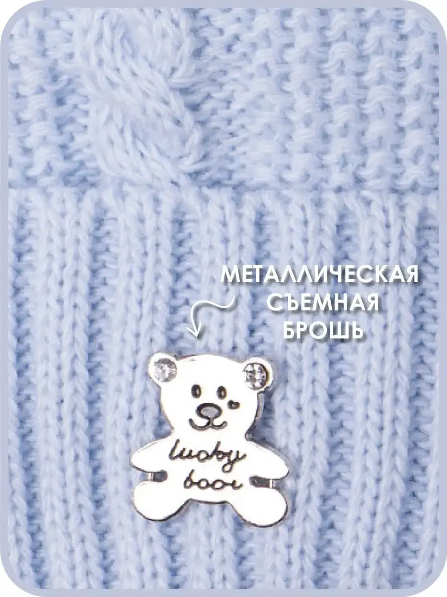 Шапка детская вязаная - это отличный вариант на весну, осень и теплую зиму для Вашего ребенка. Модный головной убор подойдет мальчикам и девочкам с первых месяцев жизни, а также на выписку для новорожденных. Мягкие завязки на изделии не оставляют следов, а плотный подворот хорошо защищает ушки и лоб от ветра и холода. Шапка для мальчика и для девочки хорошо сидит на голове, благодаря оптимальной глубине, а также не сползает во время активных движений. Модель выполнена из гипоаллергенный высококачественной пряжи, за счет чего она отлично тянется и держит форму даже после множества стирок. Головной убор дополнен подкладкой из натурального хлопка, поэтому не позволяет голове ребенка потеть, а значит снижает риск простудиться. Декорирована шапочка металлической брошкой в виде медвежонка. Для удобства подбора размера, мы прикрепили таблицу измерений с подробными рекомендациями. По уходу за изделием мы рекомендуем деликатную стирку (при t не более 30С), бережный отжим и сушку на горизонтальной поверхности. Головные уборы от бренда Uptime - это высокое качество, стиль и непревзойденный комфорт!