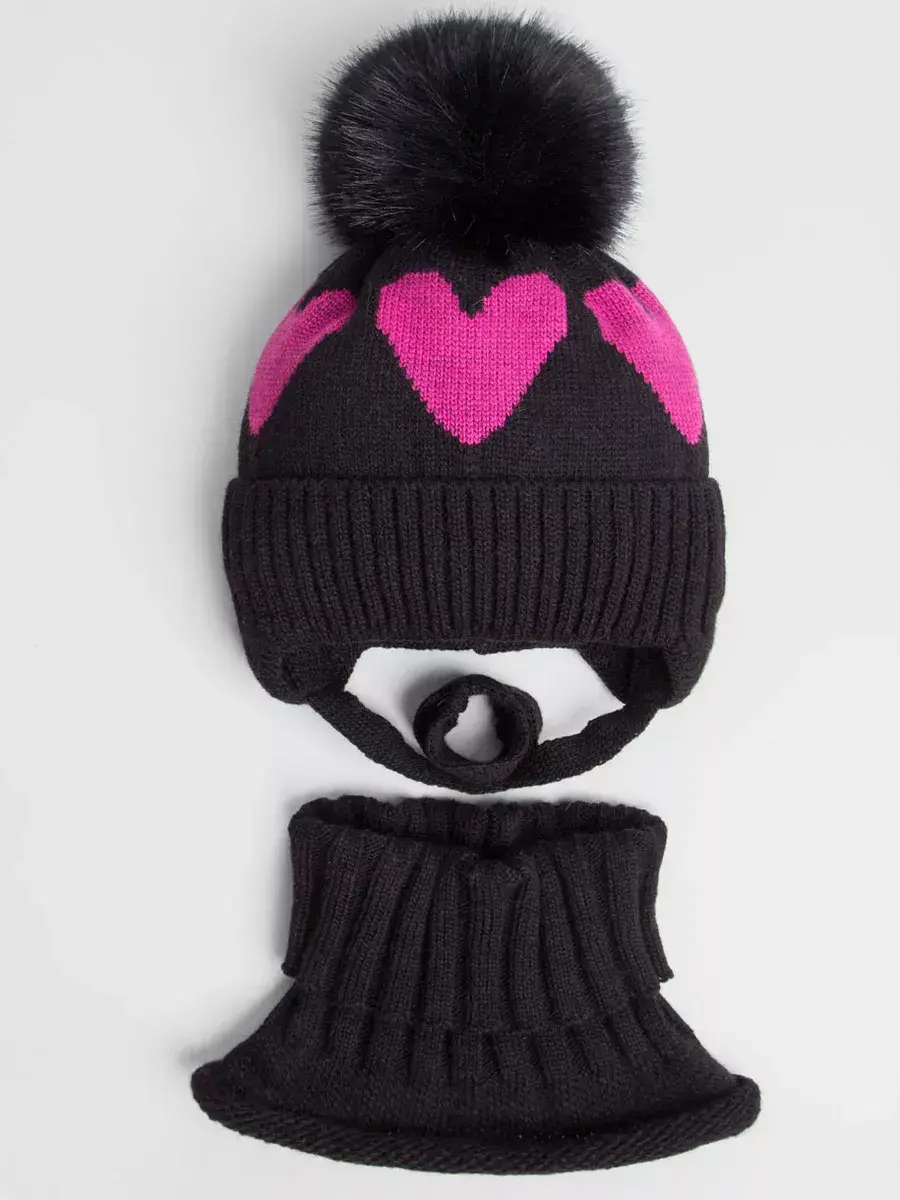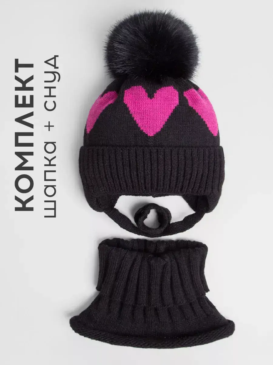 Шапка зимняя вязаная с помпоном и манишкой – отличный выбор для маленьких модниц! Зимняя шапка для малышей и манишка станут не только теплым аксессуаром в холодное время года, но и стильным дополнением к зимнему образу вашего ребенка. Эта шапка и манишка для девочек с узором “сердечко” подойдёт под любой образ благодаря широкому ассортименту цветов и универсальному дизайну.