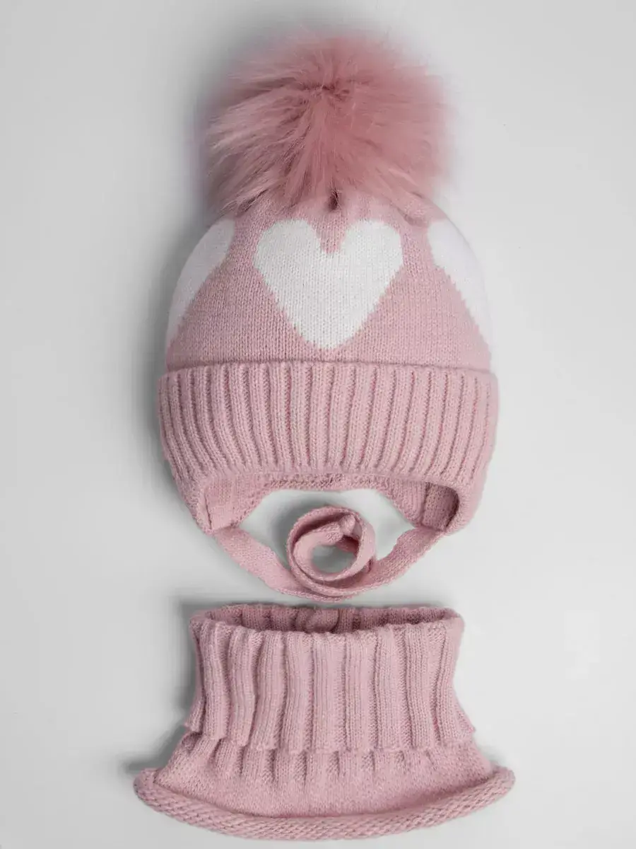 Шапка зимняя вязаная с помпоном и манишкой – отличный выбор для маленьких модниц! Зимняя шапка для малышей и манишка станут не только теплым аксессуаром в холодное время года, но и стильным дополнением к зимнему образу вашего ребенка. Эта шапка и манишка для девочек с узором “сердечко” подойдёт под любой образ благодаря широкому ассортименту цветов и универсальному дизайну.