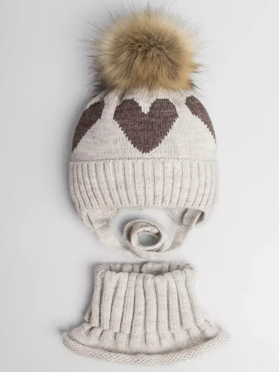 Шапка зимняя вязаная с помпоном и манишкой – отличный выбор для маленьких модниц! Зимняя шапка для малышей и манишка станут не только теплым аксессуаром в холодное время года, но и стильным дополнением к зимнему образу вашего ребенка. Эта шапка и манишка для девочек с узором “сердечко” подойдёт под любой образ благодаря широкому ассортименту цветов и универсальному дизайну.