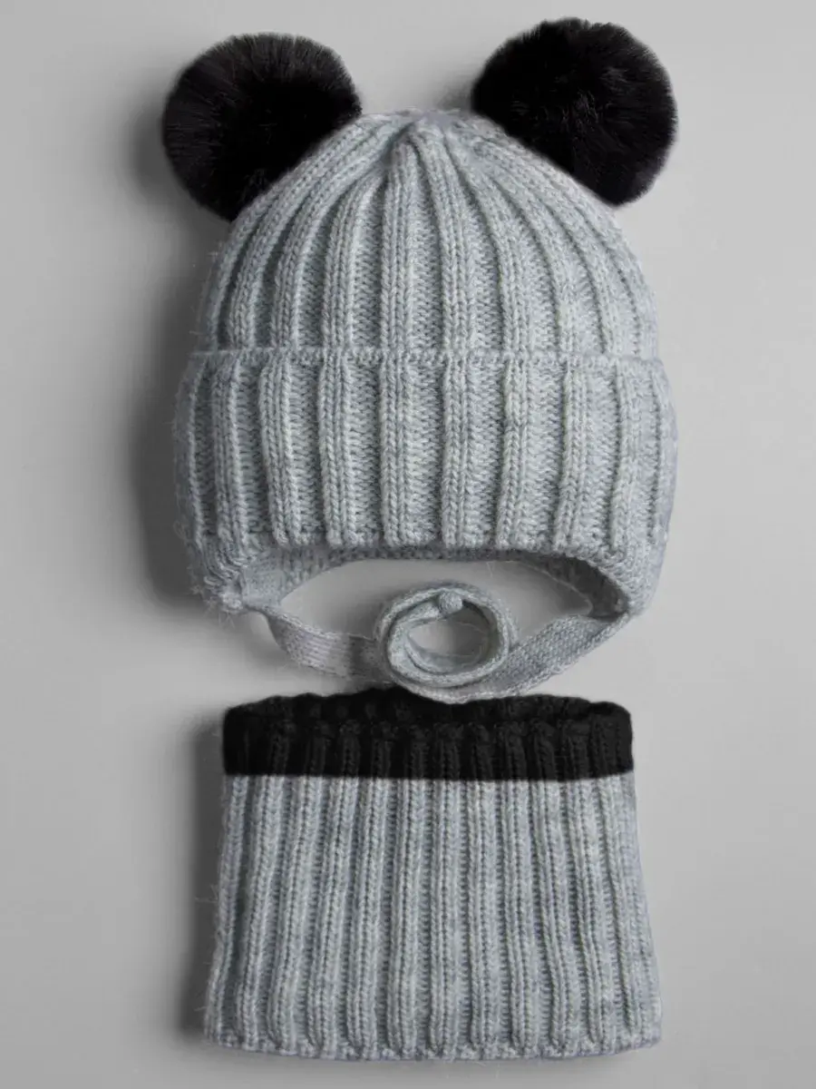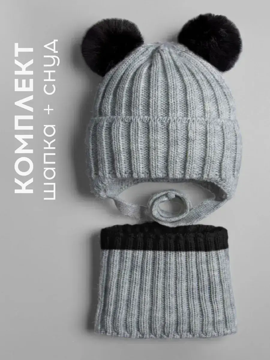 Помпоны добавляют игривости и уникальности. Расположенные на вершине шапки, они создают забавный образ и нравятся маленьким модницам. Данный детский комплект идеален для школы и детского сада.