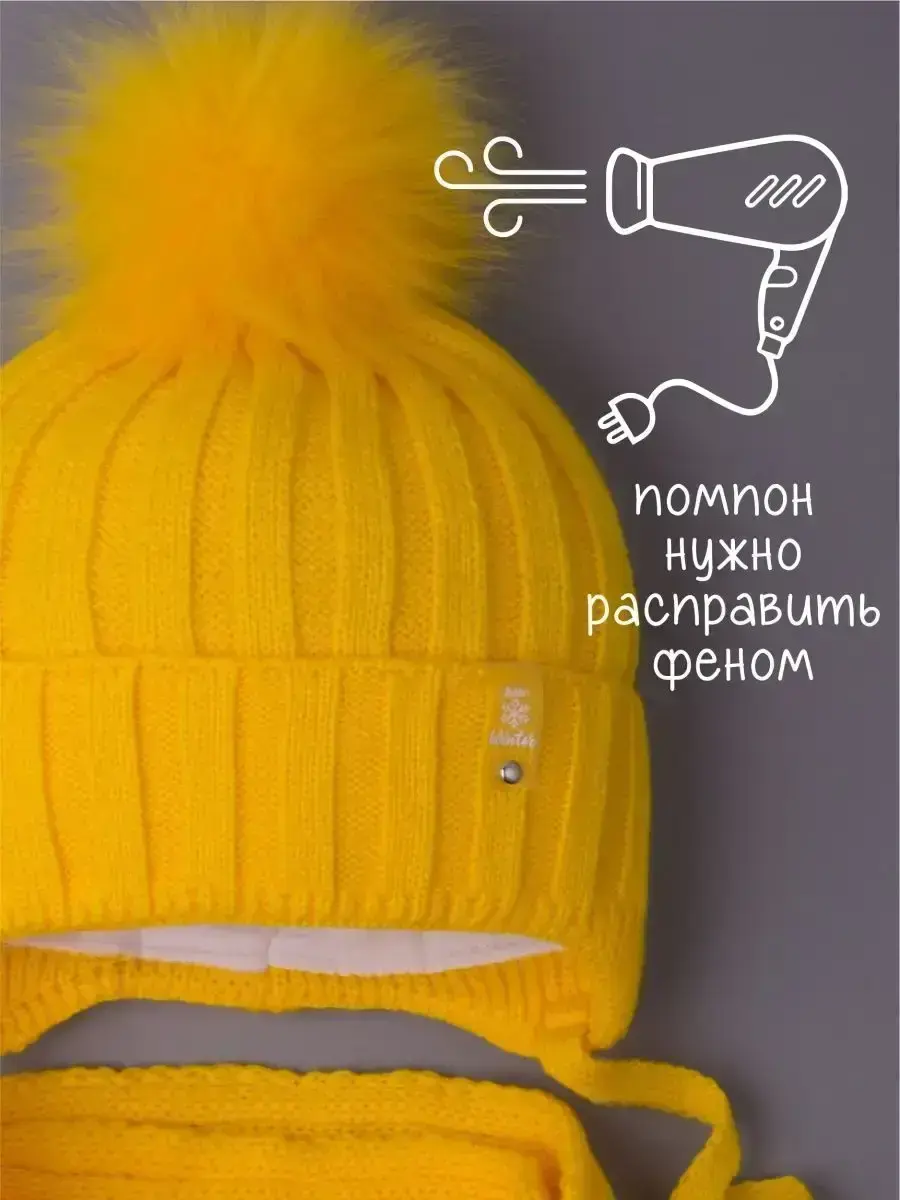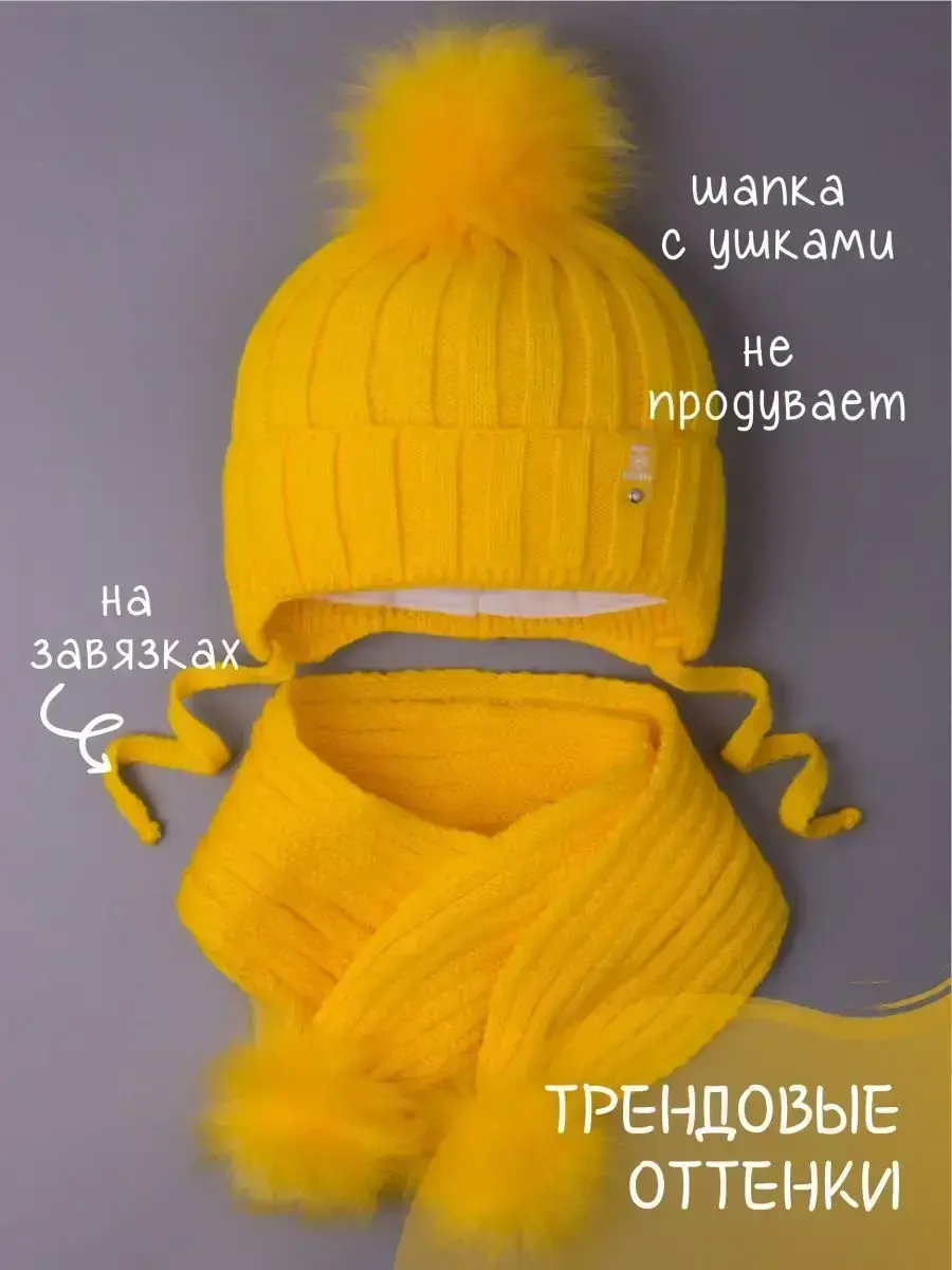 Шапка детская в комплекте с шарфом - это отличное решение на зиму и холодную осень. Вязаная теплая шапочка для девочки и для мальчика с отворотом и шарфик с помпонами красиво дополнят и завершат образ! Модель подойдет к любому гардеробу ребенка, благодаря большому выбору расцветок. Она надежно защищает ушки и голову вашего малыша от холода и ветра. Удобная модель с завязками позволяет надежно фиксировать шапку на голове, что особенно важно для активных детей. Демисезонный комплект для детей утеплен синтепоном и согреет даже в морозные дни от -5 до -25С. Шапка для малышей дополнена хлопковой подкладкой, что добавляет комфорта и не дает голове ребенка вспотеть, а значит снижает риск простудиться. Зимняя шапка для малыша с завязками — это идеальный выбор для холодной погоды. Выбирайте качественные детские шапочки и шарфы, чтобы ваш ребенок всегда оставался стильным и защищенным от зимнего холода! Чтобы меховой помпон быстрее распушился его необходимо подержать над горячим паром 2-3 секунды, а затем встряхнуть. Зимний набор детский незаменим для озорных детей, любящих активные игры на свежем воздухе. Шапка надежно защищает ушки и голову вашего малыша от холода и ветра. Удобная модель с завязками позволяет надежно фиксировать шапку на голове ребенка, что особенно важно для активных детей. Высококачественный гипоаллергенный состав пряжи не вызовет раздражения на чувствительной детской коже. Наш зимний набор - шапка с шарфом для мальчика и девочки - идеальное решение для школы, детского садика и повседневного использования.