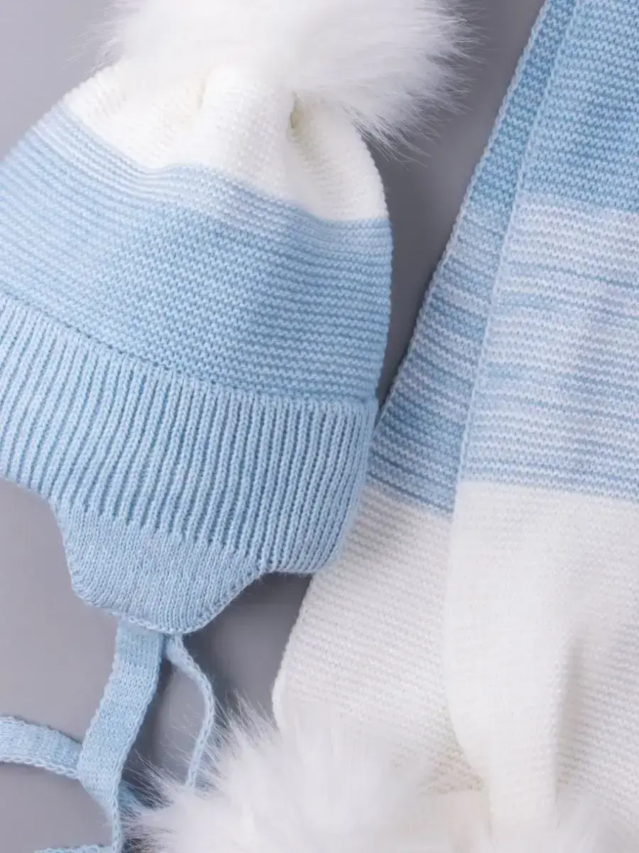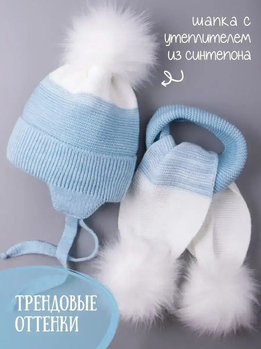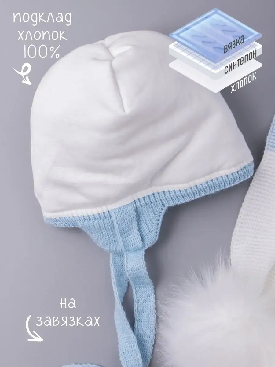 Шапка зимняя детская на завязках в комплекте с шарфом - это отличный вариант на зиму и холодную осень. Головной убор подойдет как для мальчика, так и для девочки. Модель утеплена синтепоном, поэтому Вашему ребенку будет комфортно в ней даже при -25С. Вязаная шапочка для мальчика и для девочки имеет подкладку из натурального хлопка, что позволяет лучше сохранять тепло. Шапка и шарфик идеальны для активного отдыха на свежем воздухе и длительных прогулок. Универсальные модные расцветки нашего зимнего комплекта хорошо сочетаются с любым гардеробом ребенка. Наш зимний комплект просто незаменимая вещь для школы и детского садика, а так же для прогулок на свежем воздухе. Чтобы меховые помпоны быстрее распушились мы рекомендуем подержать их над горячим паром (например, использовать фен) 2-3 секунды, а затем встряхнуть. Благодаря качественному составу пряжи (акрил) детский вязаный комплект будет радовать Вас не один сезон! По уходу за самим изделием своим клиентам мы рекомендуем бережную стирку (при t не более 30С) и сушку на горизонтальной поверхности в расправленном виде. Сделано в России.