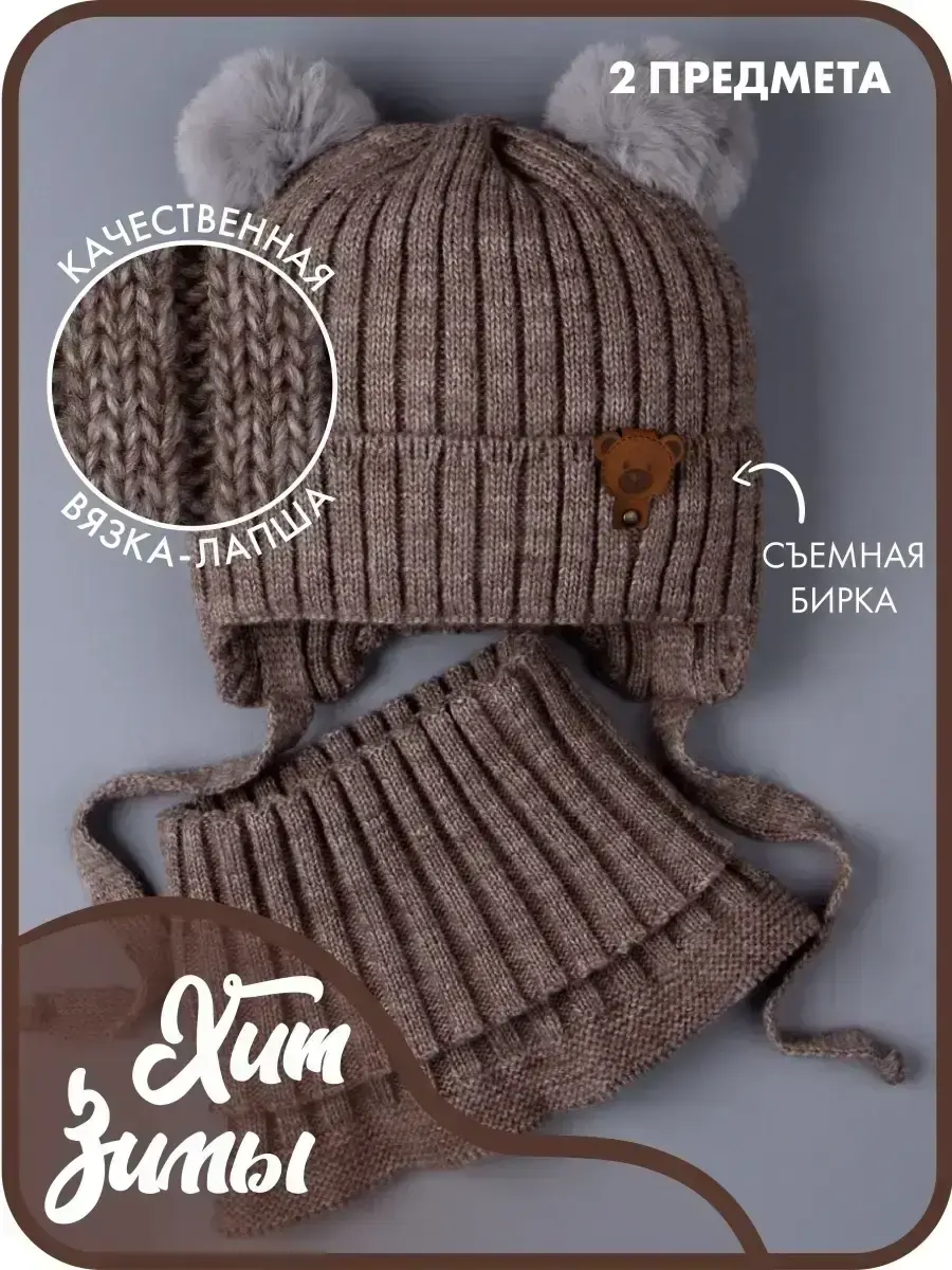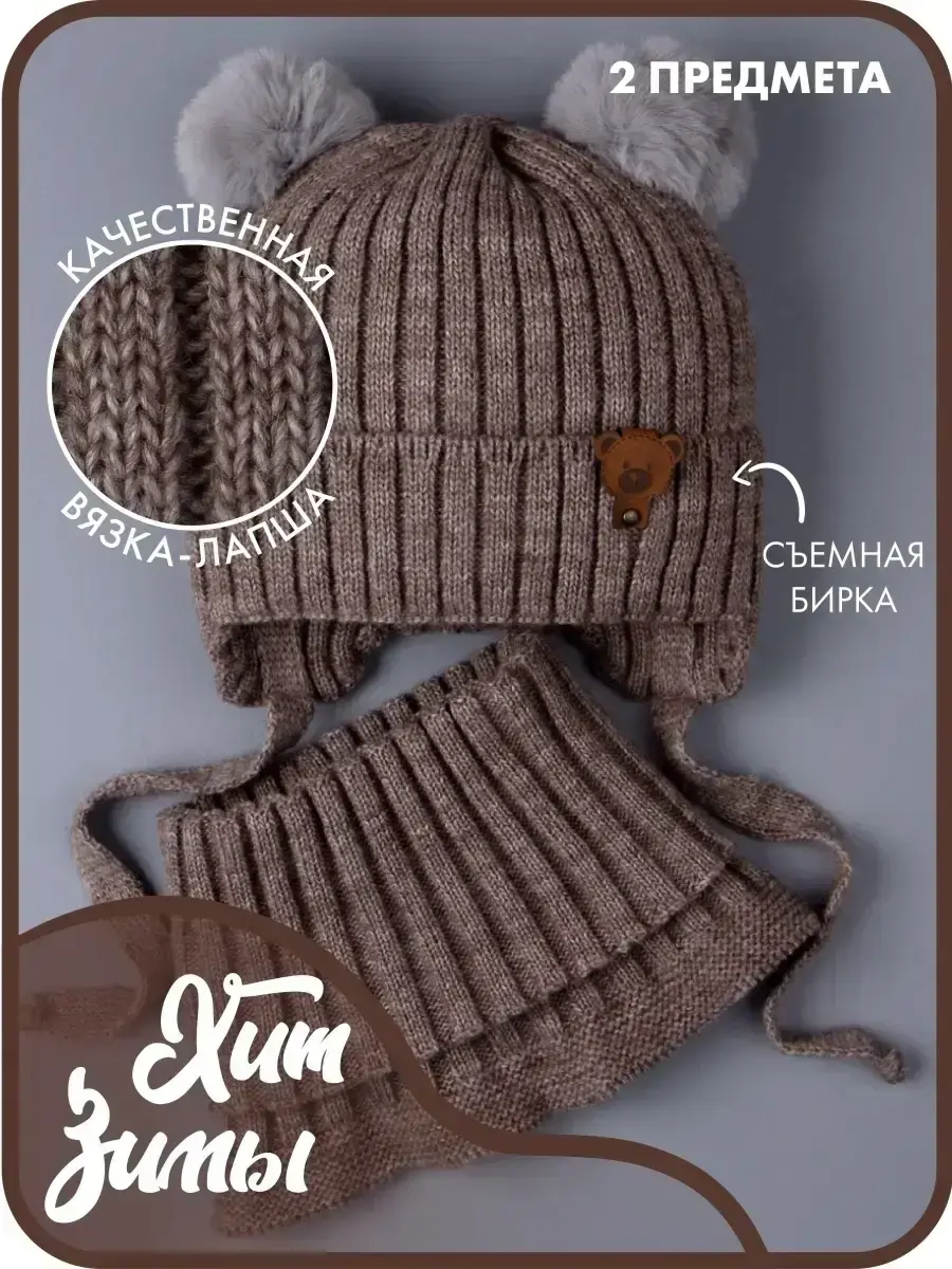 Шапка зимняя детская и снуд станут стильным дополнением к образу Вашего ребенка! Подойдет мальчикам и девочкам. Вязаный комплект выполнен из высококачественной мягкой пряжи, которая хорошо сохраняет тепло, не колется и не вызывает раздражения. Головной убор детский представлен в широкой цветовой линейке и отлично сочетается с любым гардеробом. Шапочка детская утеплена синтепоном, который спрятан под хлопковой подкладкой, поэтому находиться в ней в самые морозные дни Вашему малышу будет комфортно. Большой размерный ряд рассчитан для детей от трех месяцев до десяти лет. Декорировано изделие модной съемной брошью с изображением звездочки и двумя бубонами в виде ушек, что придает настроения и не оставляет равнодушными окружающих. Осеннюю шапку детскую можно носить как вместе со снудом из комплекта, так и совмещать с другими аксессуарами. Набор не колется и не натирает кожу ребенка, отлично подходит для прогулок и активного отдыха на свежем воздухе. В каталог нашего магазина представлен большой выбор головных уборов для детей и взрослых на любой сезон!