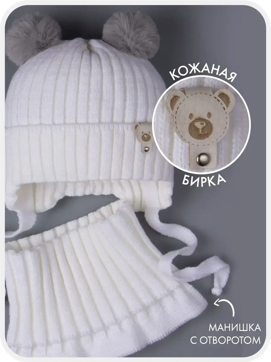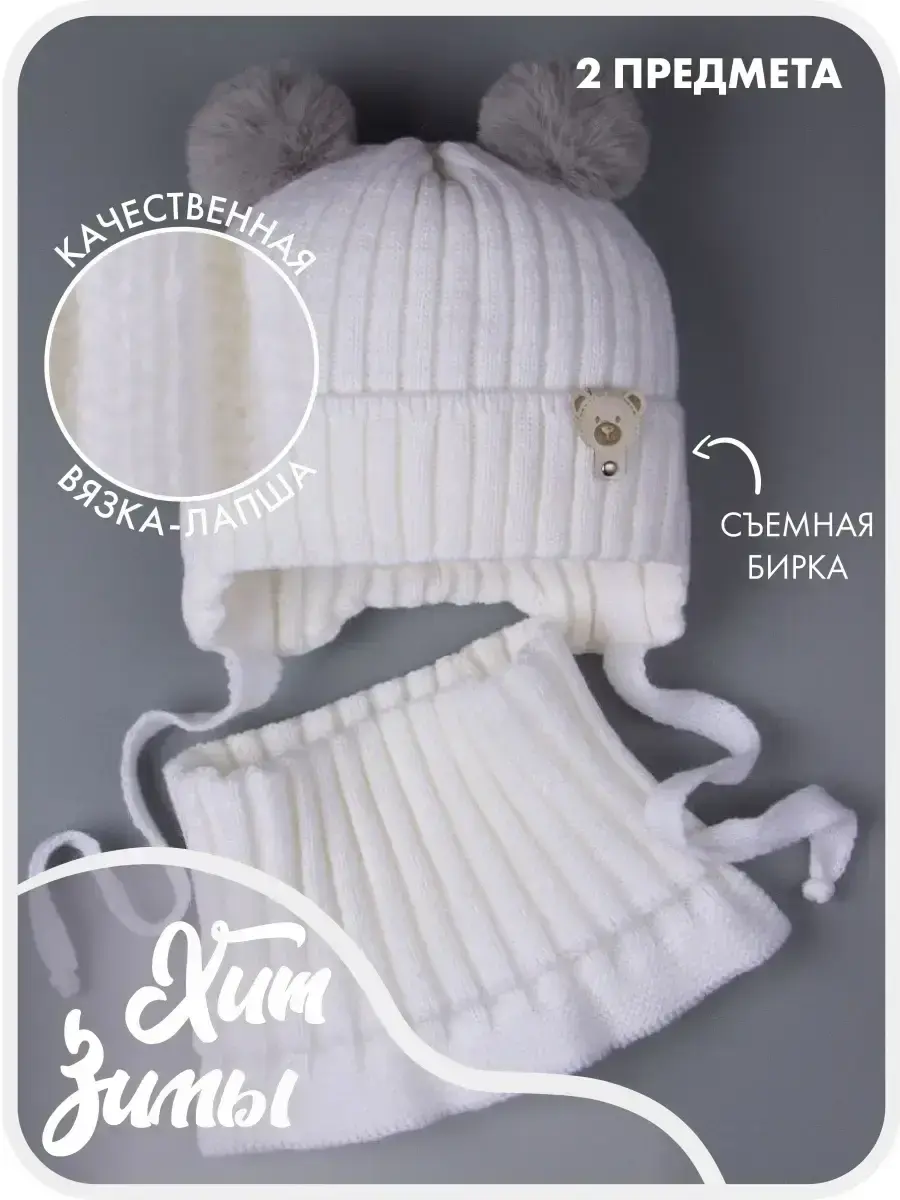 Шапка зимняя детская и снуд станут стильным дополнением к образу Вашего ребенка! Подойдет мальчикам и девочкам. Вязаный комплект выполнен из высококачественной мягкой пряжи, которая хорошо сохраняет тепло, не колется и не вызывает раздражения. Головной убор детский представлен в широкой цветовой линейке и отлично сочетается с любым гардеробом. Шапочка детская утеплена синтепоном, который спрятан под хлопковой подкладкой, поэтому находиться в ней в самые морозные дни Вашему малышу будет комфортно. Большой размерный ряд рассчитан для детей от трех месяцев до десяти лет. Декорировано изделие модной съемной брошью с изображением звездочки и двумя бубонами в виде ушек, что придает настроения и не оставляет равнодушными окружающих. Осеннюю шапку детскую можно носить как вместе со снудом из комплекта, так и совмещать с другими аксессуарами. Набор не колется и не натирает кожу ребенка, отлично подходит для прогулок и активного отдыха на свежем воздухе. В каталог нашего магазина представлен большой выбор головных уборов для детей и взрослых на любой сезон!