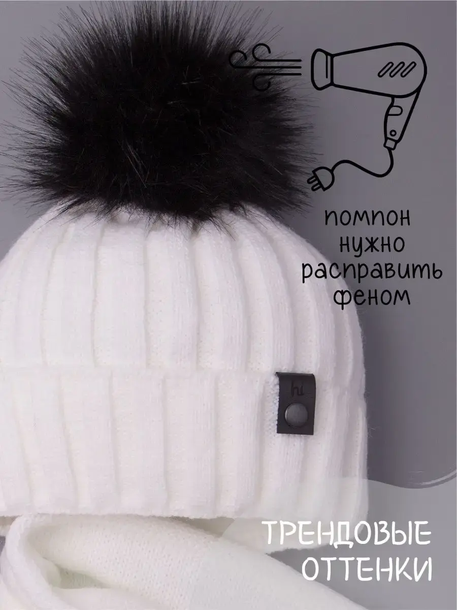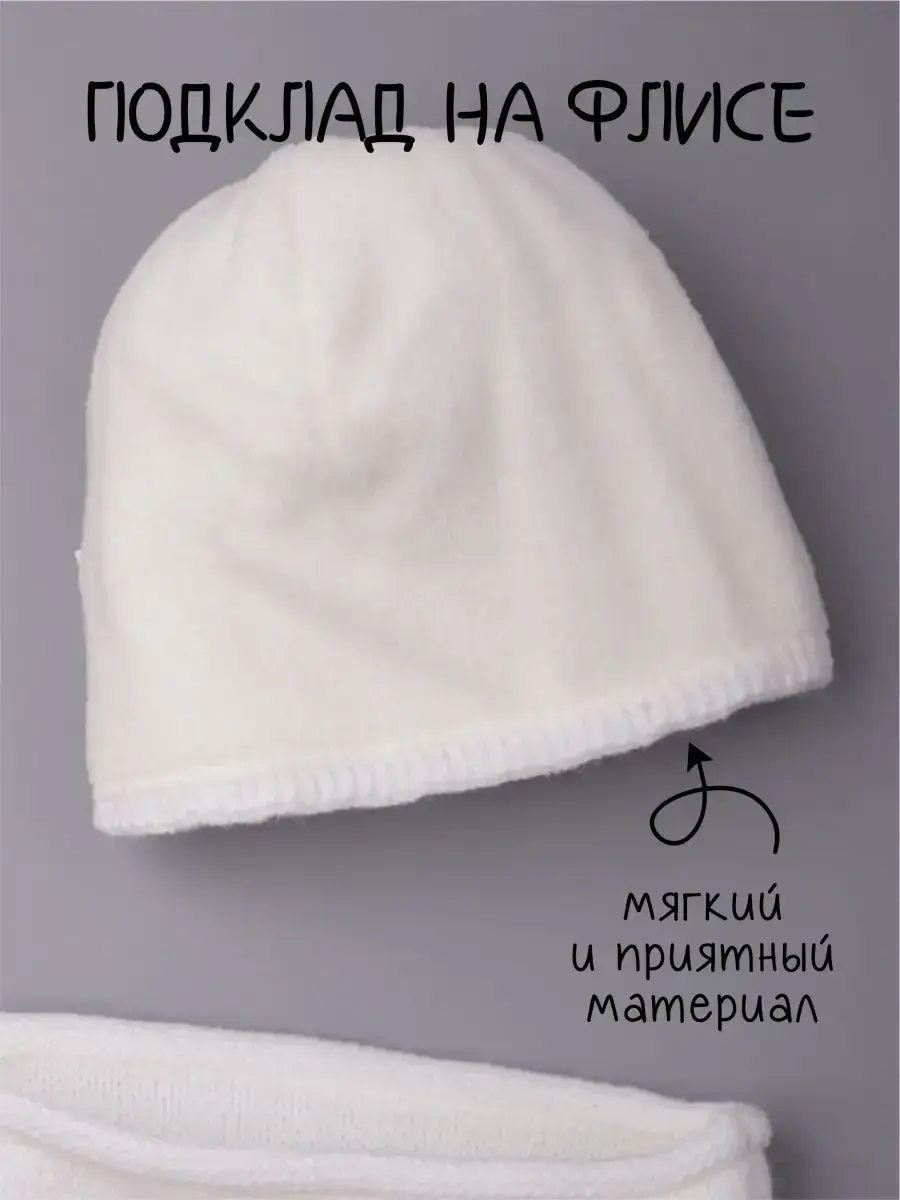 Детская зимняя вязаная шапочка станет отличным выбором для малышей в прохладное время года. Шапка подойдет как девочкам, так и мальчикам. Ее теплая структура обеспечивает защиту от ветра и холода, а вязка-лапша придает особый уют и комфорт. Черный помпон из искусственного меха и кожаная бирка добавят индивидуальности образу малыша! Для того, чтобы он принял нужную форму, его рекомендуется распушить при помощи фена. Мягкий флисовый подклад внутри шапочки обеспечивает дополнительное тепло, что делает носку особенно комфортной. Данный аксессуар идеально подходит на зимний период. Шапка для мальчика прекрасно сочетается с другими предметами гардероба, создавая стильный и законченный образ. Кроме того, модель дополнена детским снудом, который обеспечивает дополнительную защиту шеи от холодного воздуха. Снуд детский легко складывается гармошкой и надевается под капюшон верхней одежды. Он прекрасно тянется и не натирает шею ребенку благодаря качественной обработке краев. Шапка и снуд не только согреют вашего малыша в любую непогоду, но и подчеркивают индивидуальность его стиля. Вязаная шапка для девочки очень мягкая и эластичная, с помпоном изделие выглядит игриво и забавно, добавляя нотку озорства в повседневный наряд.