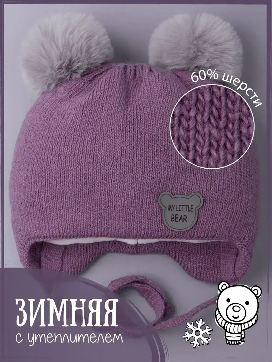 Шапка детская зимняя от российского бренда Ok Top не только защитит от прохлады и ветра, но и красиво завершит стильный образ Вашего ребенка. Головной убор подойдет как для мальчиков, так и для девочек. Большой размерный ряд поможет выбрать вязаную шапочку деткам от одного месяца до десяти лет. Данная модель утеплена синтепоном, поэтому подойдет даже для самых сильных морозов (до-25С). Дополнена шапочка подкладкой из натурального хлопка, что добавляет комфорта во время ношения и не позволяет голове малыша вспотеть. Добавляет индивидуальности головному убору кожаная нашивка с надписью "MY LITTLE BEAR" ("мой сладкий медвежонок").