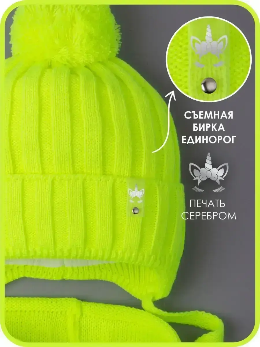 Шапка для девочки вязаная и снуд-это отличный вариант на осень и теплую зиму. Шапочка для девочки с завязками подойдет как для малышей с шести месяцев, так и для детей постарше (подростков). Модель дополнена подкладкой из натурального хлопка, благодаря чему голова не будет потеть, а находиться в ней во время долгих прогулок будет комфортно. Широкий отворот головного убора плотно прилегает, закрывая ушки и лоб. Декорировано изделие стильной кожаной биркой с изображением единорога, которая без труда отстегивается. Снуд для девочки -это удобная альтернатива шарфу или манишке, он хорошо тянется и защищает шею от холода. Благодаря качественной вязке он легко регулируется по ширине, а его длина подходит даже для самого объемного капюшона. Модель выполнена в самых трендовых цветах этого сезона и прекрасно сочетается с любым гардеробом юной модницы. Она изготовлена из пряжи высокого качества, которая не растянется и не потеряет форму даже после длительного использования. Комплект для детей не скатывается, не магнитится, не продувает. Для того, чтобы шапка детская на осень прослужила Вам как можно дольше, мы рекомендуем ручную или машинную бережную стирку при t не более 30 С. Детская осенняя шапка со снудом от российского бренда РусБубон непременно должна быть у Вашего ребенка! Сделано в России.