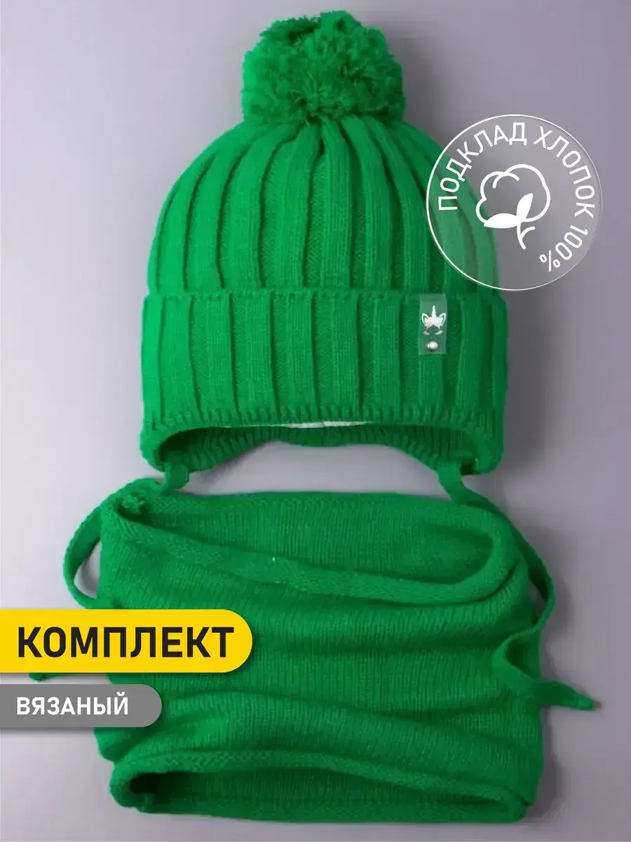 Шапка для девочки вязаная и снуд-это отличный вариант на осень и теплую зиму. Шапочка для девочки с завязками подойдет как для малышей с шести месяцев, так и для детей постарше (подростков). Модель дополнена подкладкой из натурального хлопка, благодаря чему голова не будет потеть, а находиться в ней во время долгих прогулок будет комфортно. Широкий отворот головного убора плотно прилегает, закрывая ушки и лоб. Декорировано изделие стильной кожаной биркой с изображением единорога, которая без труда отстегивается. Снуд для девочки -это удобная альтернатива шарфу или манишке, он хорошо тянется и защищает шею от холода. Благодаря качественной вязке он легко регулируется по ширине, а его длина подходит даже для самого объемного капюшона. Модель выполнена в самых трендовых цветах этого сезона и прекрасно сочетается с любым гардеробом юной модницы. Она изготовлена из пряжи высокого качества, которая не растянется и не потеряет форму даже после длительного использования. Комплект для детей не скатывается, не магнитится, не продувает. Для того, чтобы шапка детская на осень прослужила Вам как можно дольше, мы рекомендуем ручную или машинную бережную стирку при t не более 30 С. Детская осенняя шапка со снудом от российского бренда РусБубон непременно должна быть у Вашего ребенка! Сделано в России.