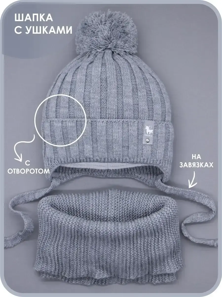 Шапка для девочки вязаная и снуд-это отличный вариант на осень и теплую зиму. Шапочка для девочки с завязками подойдет как для малышей с шести месяцев, так и для детей постарше (подростков). Модель дополнена подкладкой из натурального хлопка, благодаря чему голова не будет потеть, а находиться в ней во время долгих прогулок будет комфортно. Широкий отворот головного убора плотно прилегает, закрывая ушки и лоб. Декорировано изделие стильной кожаной биркой с изображением единорога, которая без труда отстегивается. Снуд для девочки -это удобная альтернатива шарфу или манишке, он хорошо тянется и защищает шею от холода. Благодаря качественной вязке он легко регулируется по ширине, а его длина подходит даже для самого объемного капюшона. Модель выполнена в самых трендовых цветах этого сезона и прекрасно сочетается с любым гардеробом юной модницы. Она изготовлена из пряжи высокого качества, которая не растянется и не потеряет форму даже после длительного использования. Комплект для детей не скатывается, не магнитится, не продувает. Для того, чтобы шапка детская на осень прослужила Вам как можно дольше, мы рекомендуем ручную или машинную бережную стирку при t не более 30 С. Детская осенняя шапка со снудом от российского бренда РусБубон непременно должна быть у Вашего ребенка! Сделано в России.
