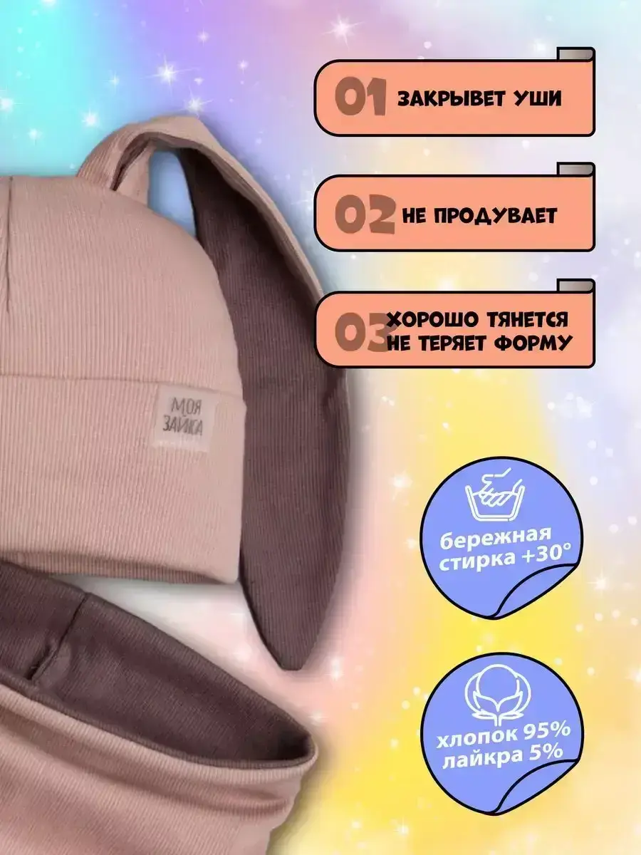 Шапка с ушами зайца для детей - это подходящее решение на осень и теплую зиму. Демисезонный головной убор и снуд детский выполнены из нежнейшего трикотажа (в рубчик), они невероятно мягкие на ощуп и комфортные в носке. Модель подойдет как для мальчика, так и для девочки. Шапка детская тонкая хорошо сидит на голове, а плотный отворот шарфа закрывает шею и лоб. Шапочка детская декорирована стильной нашивкой с надписью "Моя зайка". Снуд детский двухсторонний отлично тянется и подходит к любому образу. Комплект легко впишется в любой гардероб благодаря широкой палитре цветов, незаменимая вещь для детского садика и школы . Он прекрасно сочетается с верхней одеждой. Набор станет незаменимым вариантом для активного отдыха на свежем воздухе.