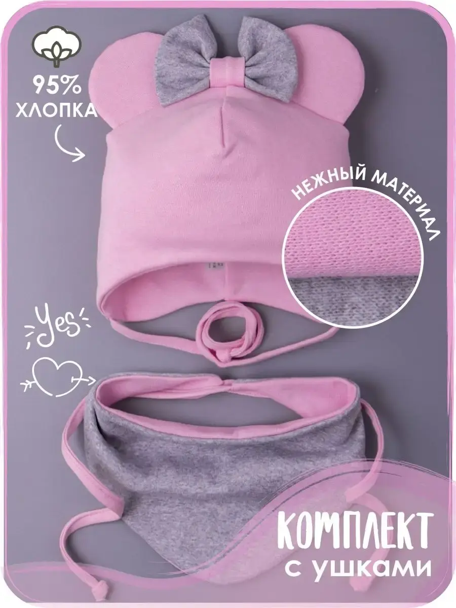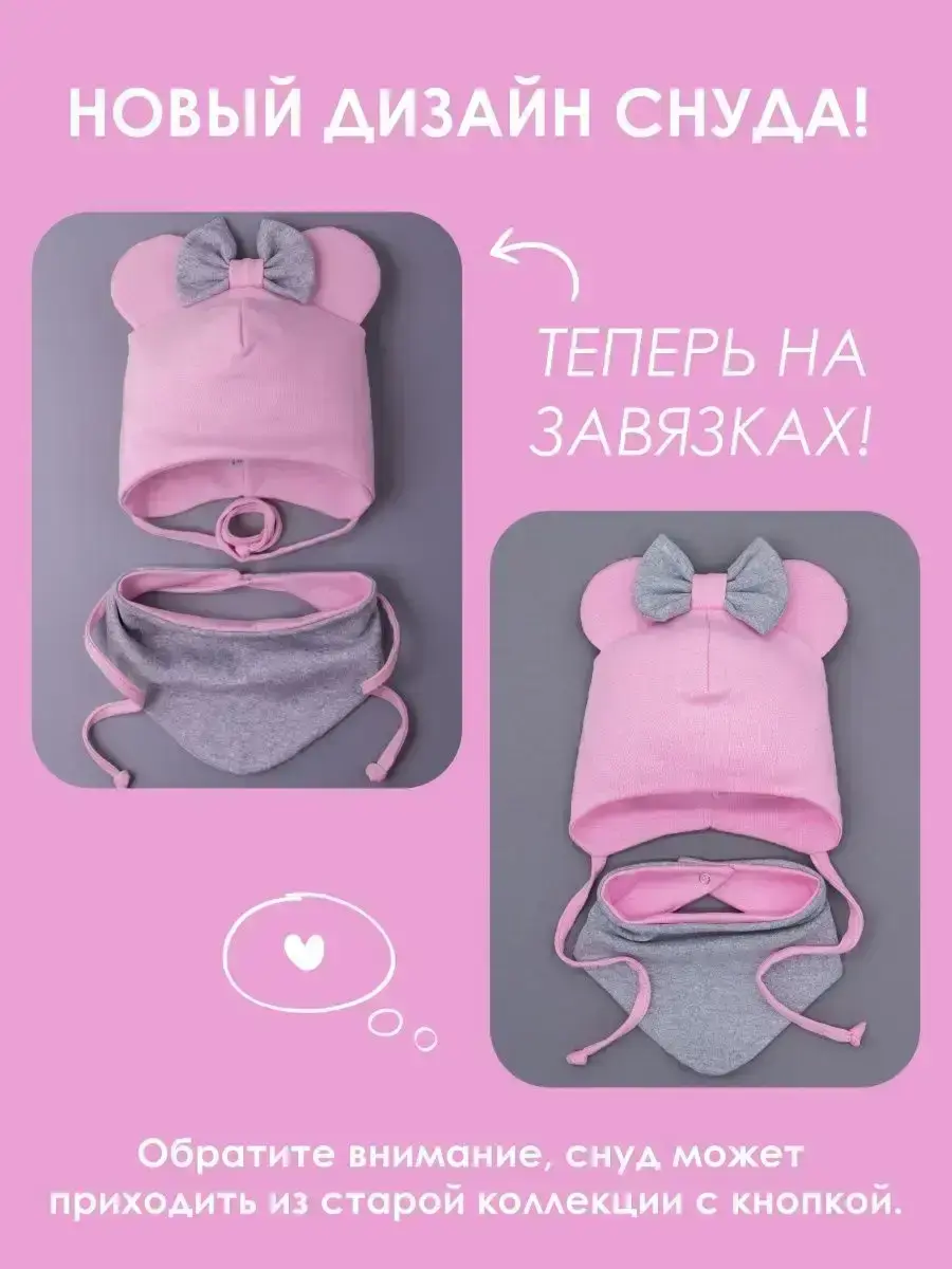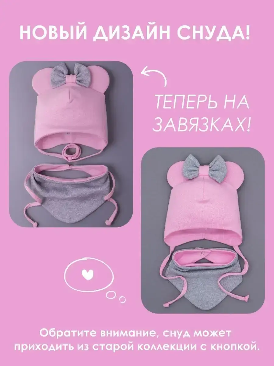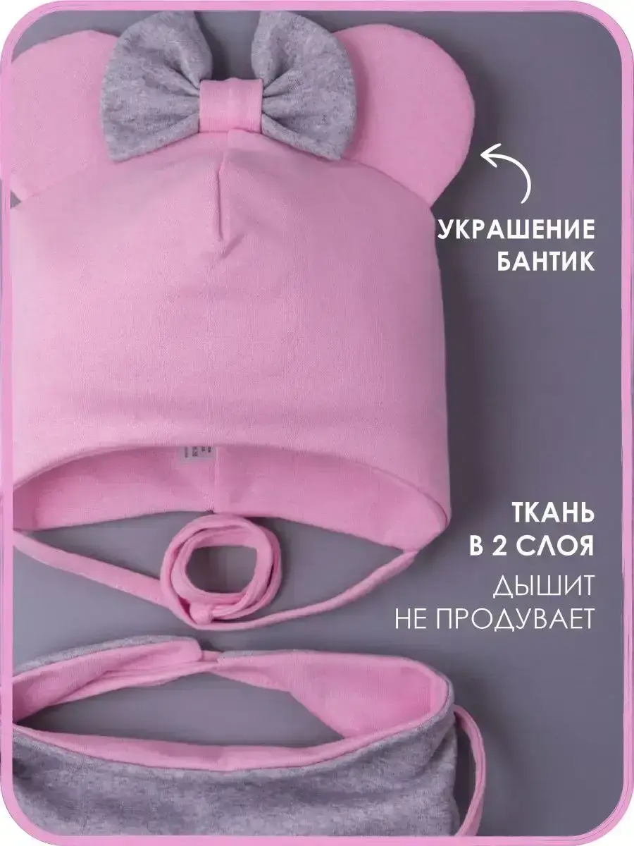 Шапка осенняя для девочки с ушками и снудом – это стильный и уютный вариант на осень и теплую зиму для вашего малыша! Хотите, чтобы ваш ребенок чувствовал себя комфортно и стильно в любую погоду? Тогда этот комплект для девочки - идеальный вариант для вас! Демисезонная шапка с ушками и бантиком для девочки из мягкого и приятного к телу трикотажа отлично защитит от ветра и холода в переходные периоды года. Шапка на завязках закрывает уши и не дает холоду проникнуть, а ушки мики мауса придают образу малыша особую милость и очарование.