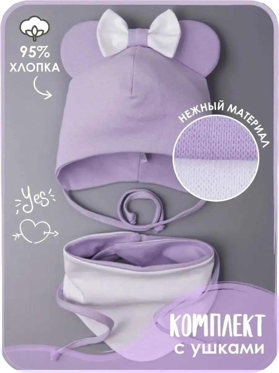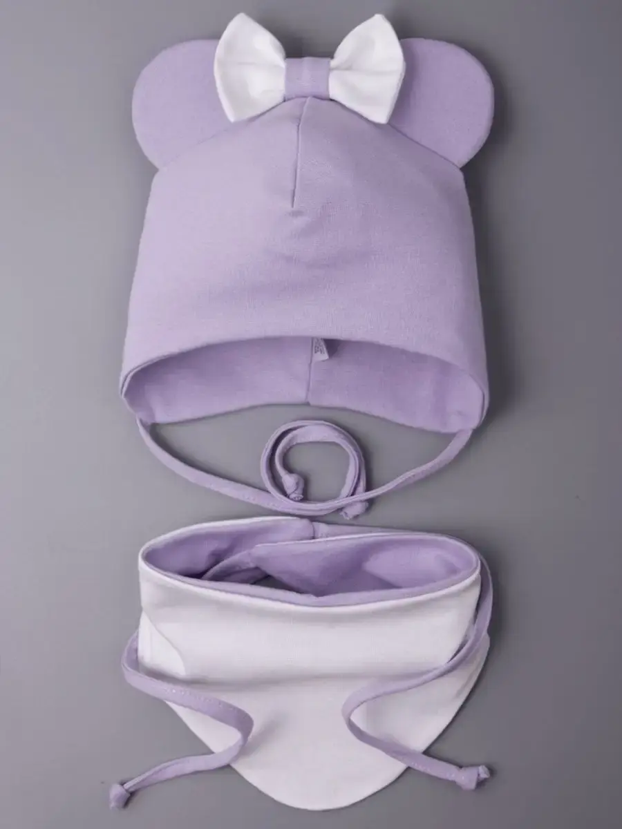 Шапка осенняя для девочки с ушками и снудом – это стильный и уютный вариант на осень и теплую зиму для вашего малыша! Хотите, чтобы ваш ребенок чувствовал себя комфортно и стильно в любую погоду? Тогда этот комплект для девочки - идеальный вариант для вас! Демисезонная шапка с ушками и бантиком для девочки из мягкого и приятного к телу трикотажа отлично защитит от ветра и холода в переходные периоды года. Шапка на завязках закрывает уши и не дает холоду проникнуть, а ушки мики мауса придают образу малыша особую милость и очарование.