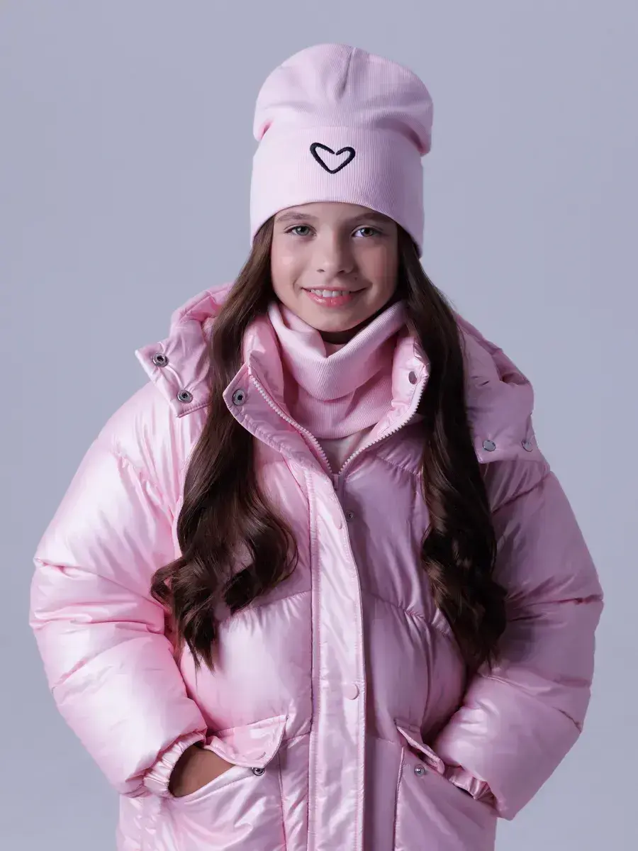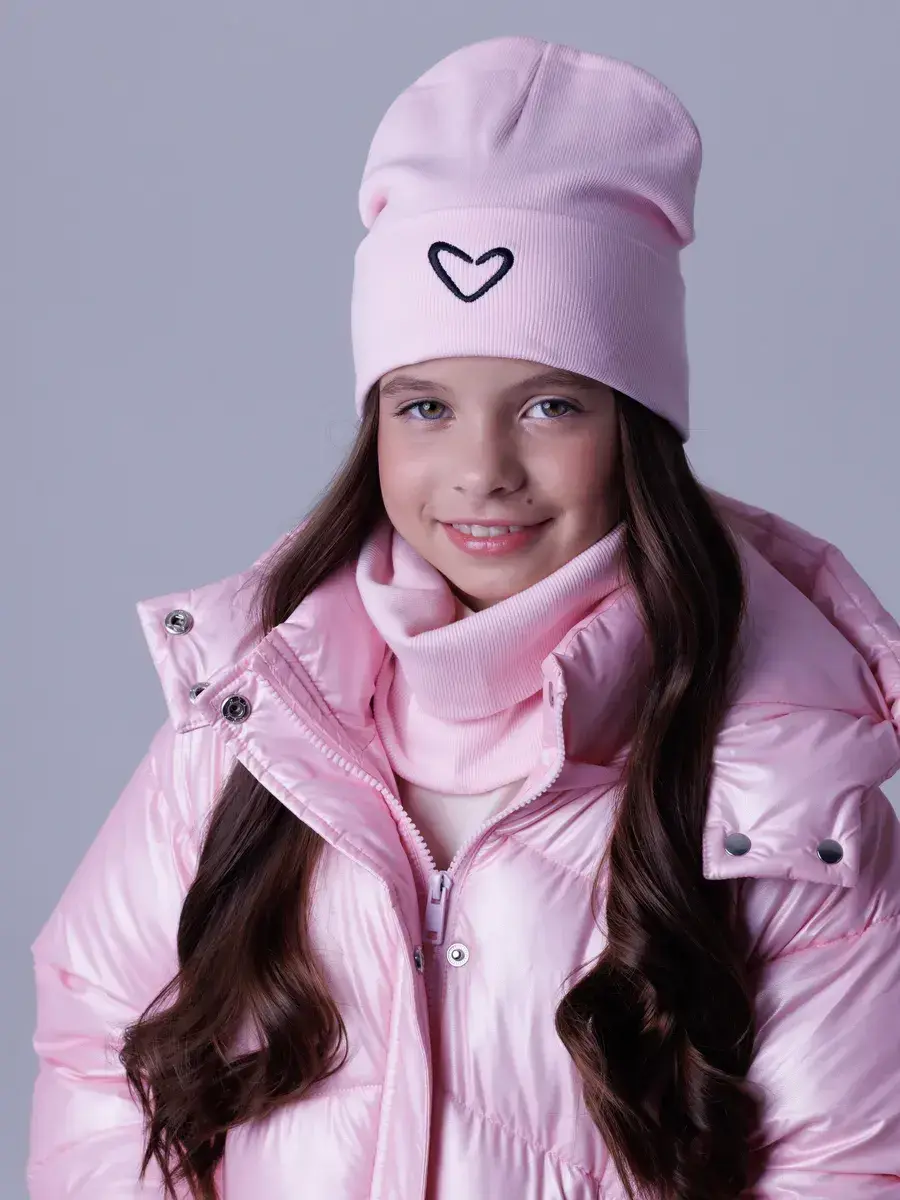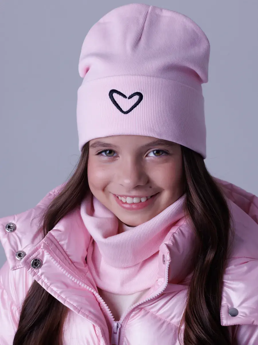 Шапка осенняя для девочки обеспечит комфорт и защиту от прохлады, а снуд станет отличным дополнением, создавая гармоничный образ. Легкий и дышащий материал позволяет коже дышать, что особенно важно в переменчивую осеннюю погоду. Это детский комплект со снудом идеален для школы и детского сада. Нашивка в виде сердечка обязательно выделит вашу девочку и подарит ей радость!