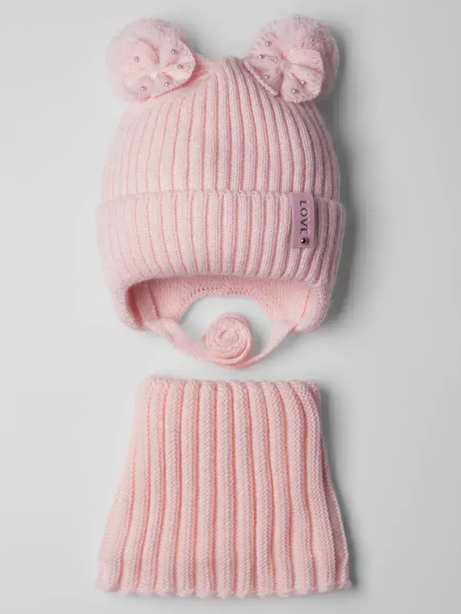 ZO-026/00-0057765/Шапка вязаная для девочки/Светло-розовый
