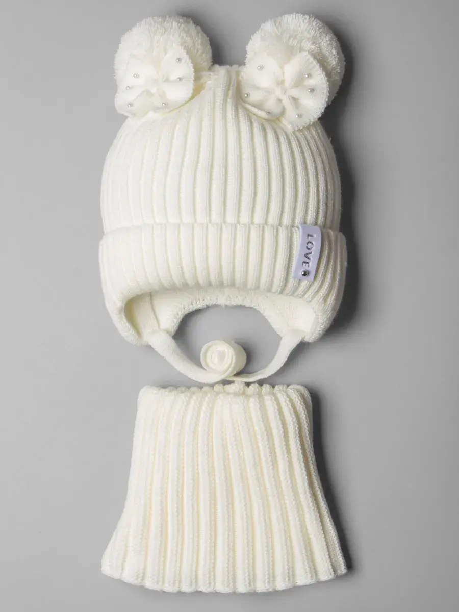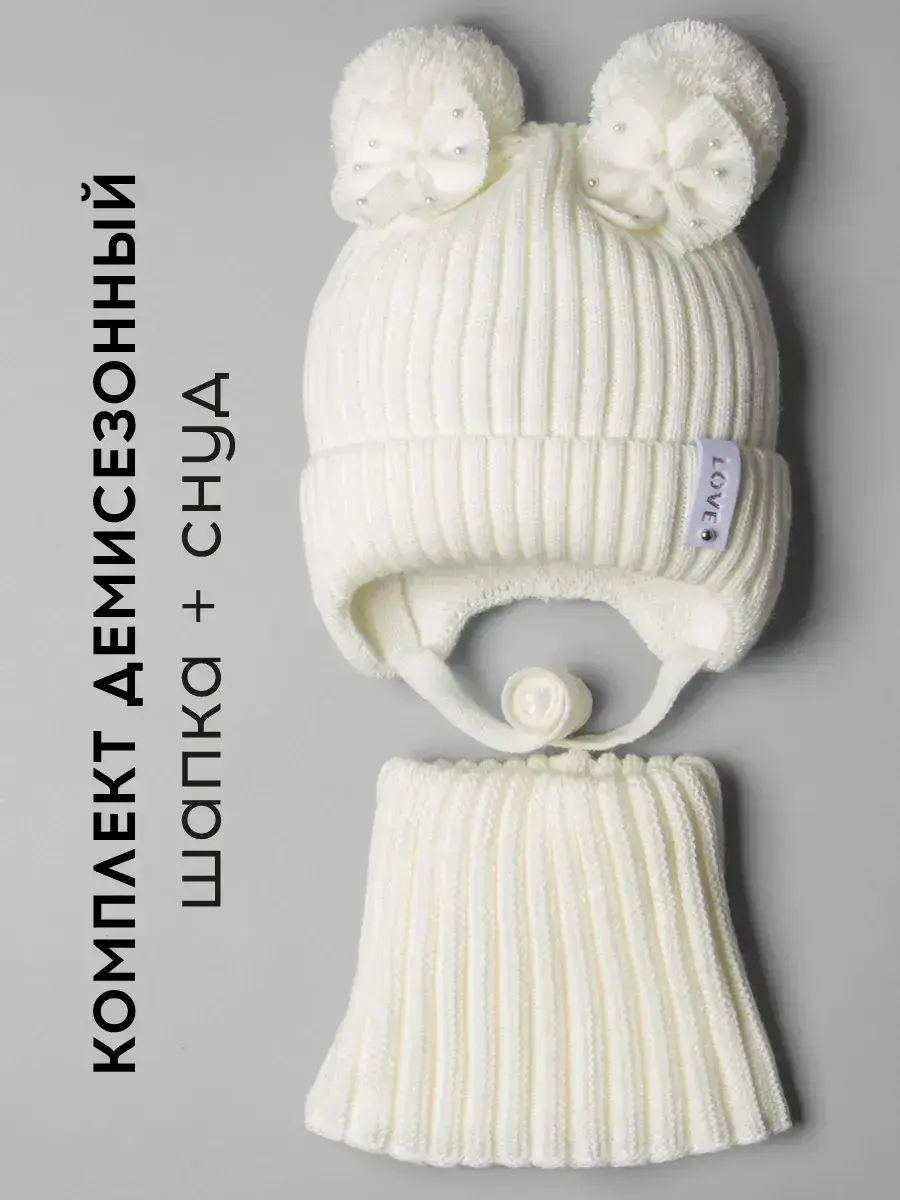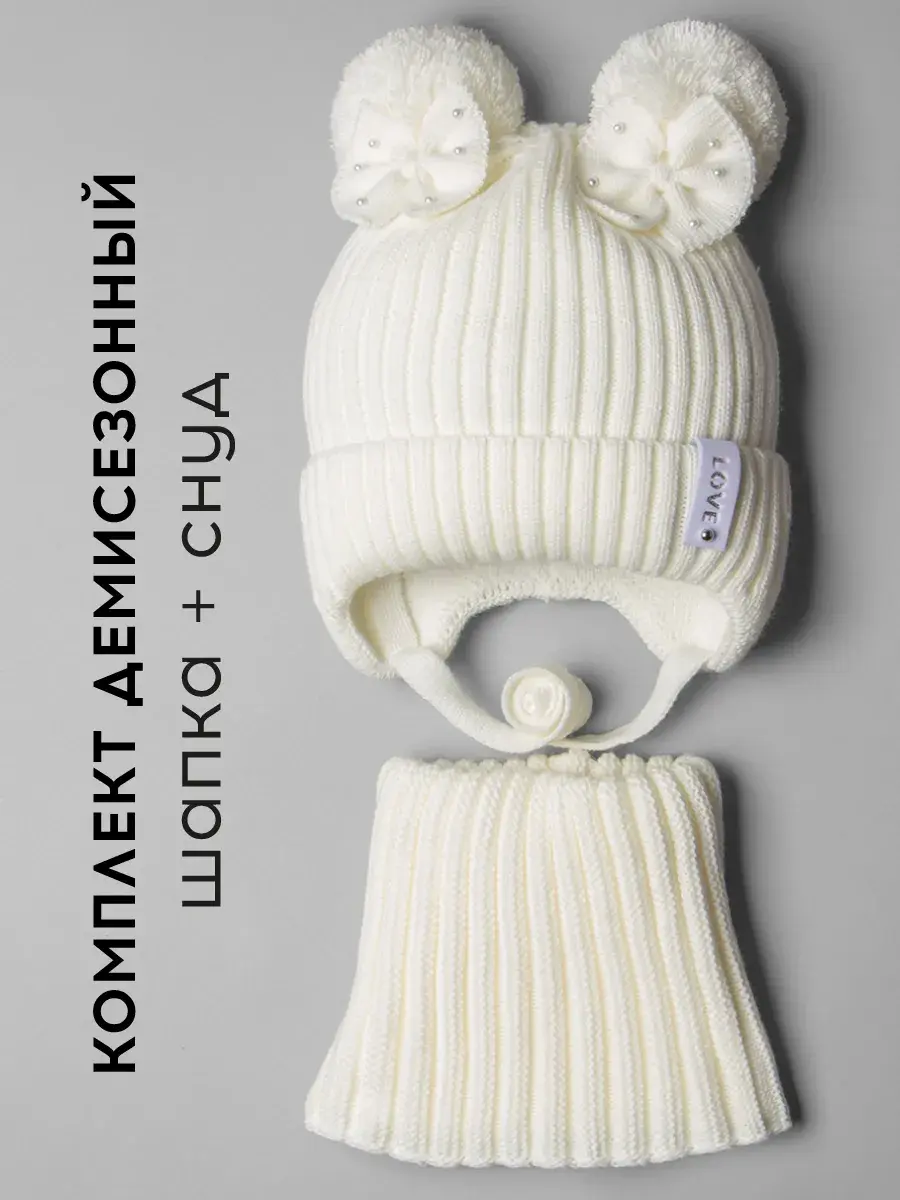 Откройте для себя идеальное осеннее решение для стильных девочек — вязаная детская шапка со снудом на завязках! Эта очаровательная модель не только великолепно выглядит, но и обеспечивает надежную защиту от холодного ветра. Детская шапка на осень, украшенная милыми помпонами и бантиками, добавит ярких акцентов в любой образ, а ее уютный дизайн гарантирует комфорт и тепло. Благодаря завязкам шапка надежно фиксируется на голове ребенка, не сползая даже во время активных игр на свежем воздухе. Демисезонный снуд прекрасно закрывает шею и уши, создавая дополнительный уют и защищая от холода. Выберите стильный аксессуар, который станет любимым элементом гардероба вашей девочки! Сделайте каждый день ярче и теплее с нашей детской вязаной шапкой и снудом — идеальным сочетанием моды и функциональности!