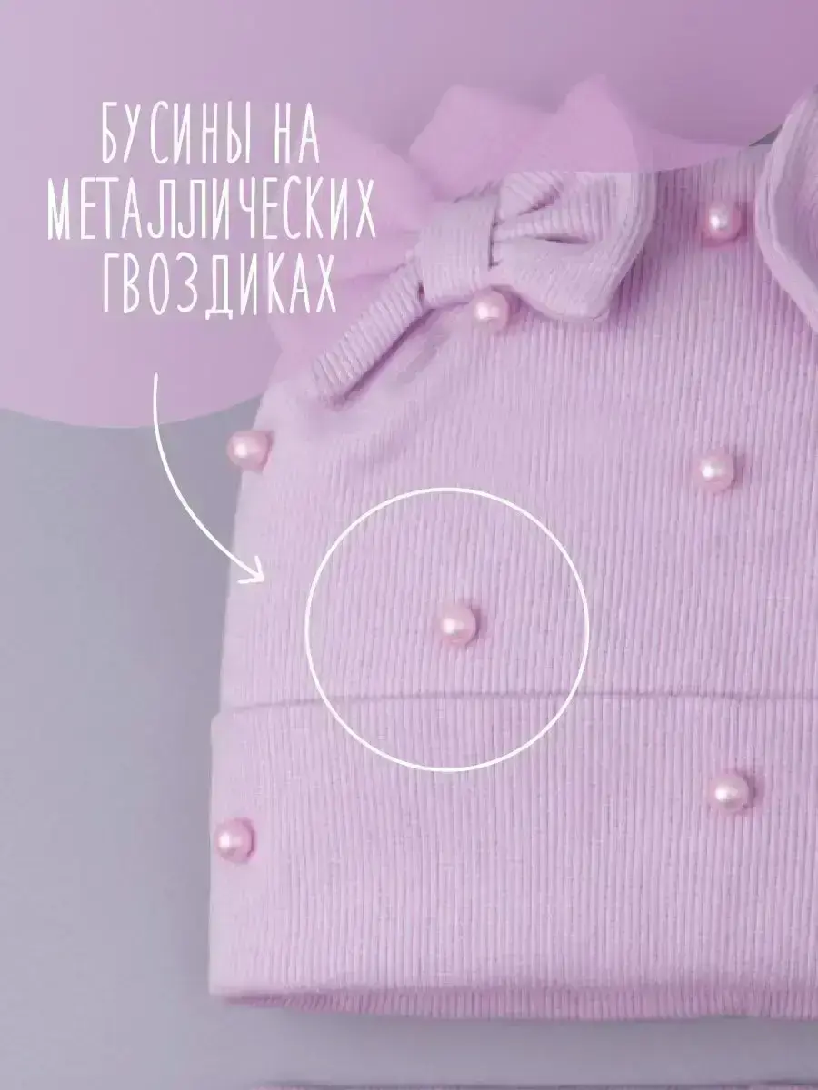 Бусины надежно прибиты к шапке — это обеспечивает их прочную фиксацию и продлевает срок службы изделия. Такой метод крепления предотвращает отрыв бусин даже при активной носке, делая шапку более долговечной.