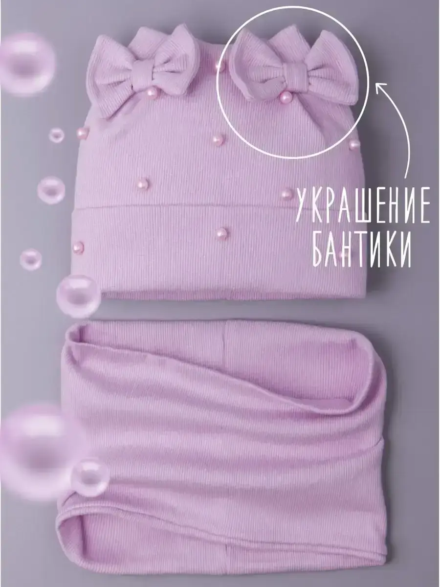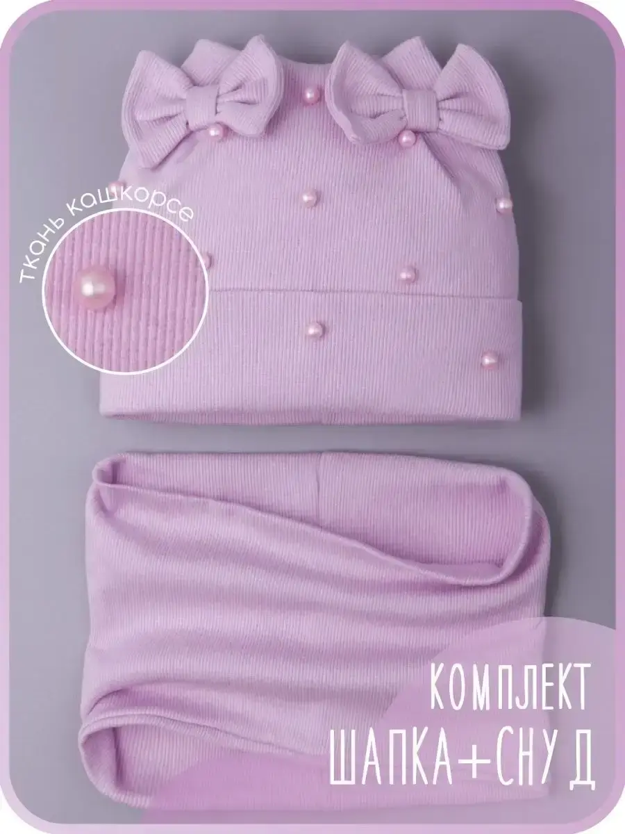 Шапка детская и снуд - это идеальный базовый комплект для девочек на осень. Легкая шапочка с ушками и нагрудник изготовлены из нежнейшего высококачественного двойного трикотажа в рубчик.