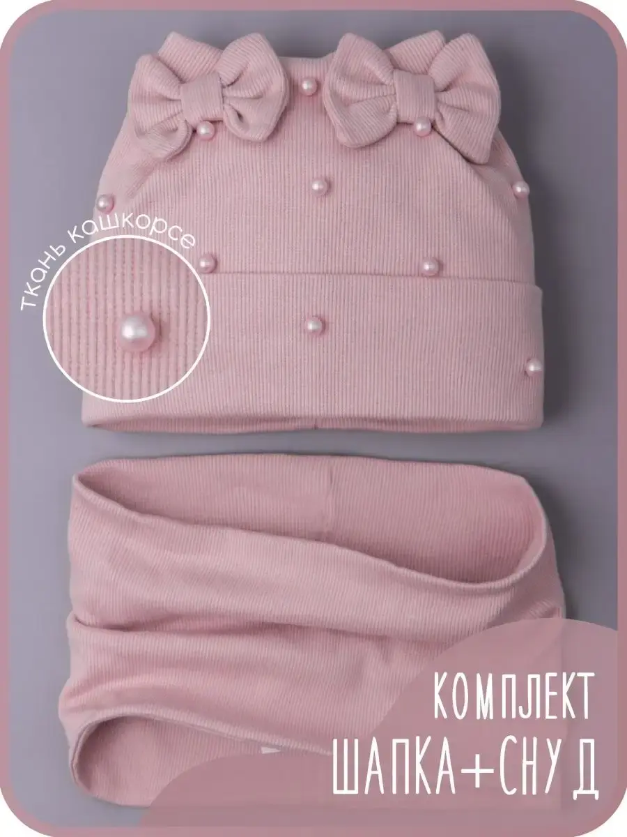 Шапка детская и снуд - это идеальный базовый комплект для девочек на осень. Легкая шапочка с ушками и нагрудник изготовлены из нежнейшего высококачественного двойного трикотажа в рубчик.