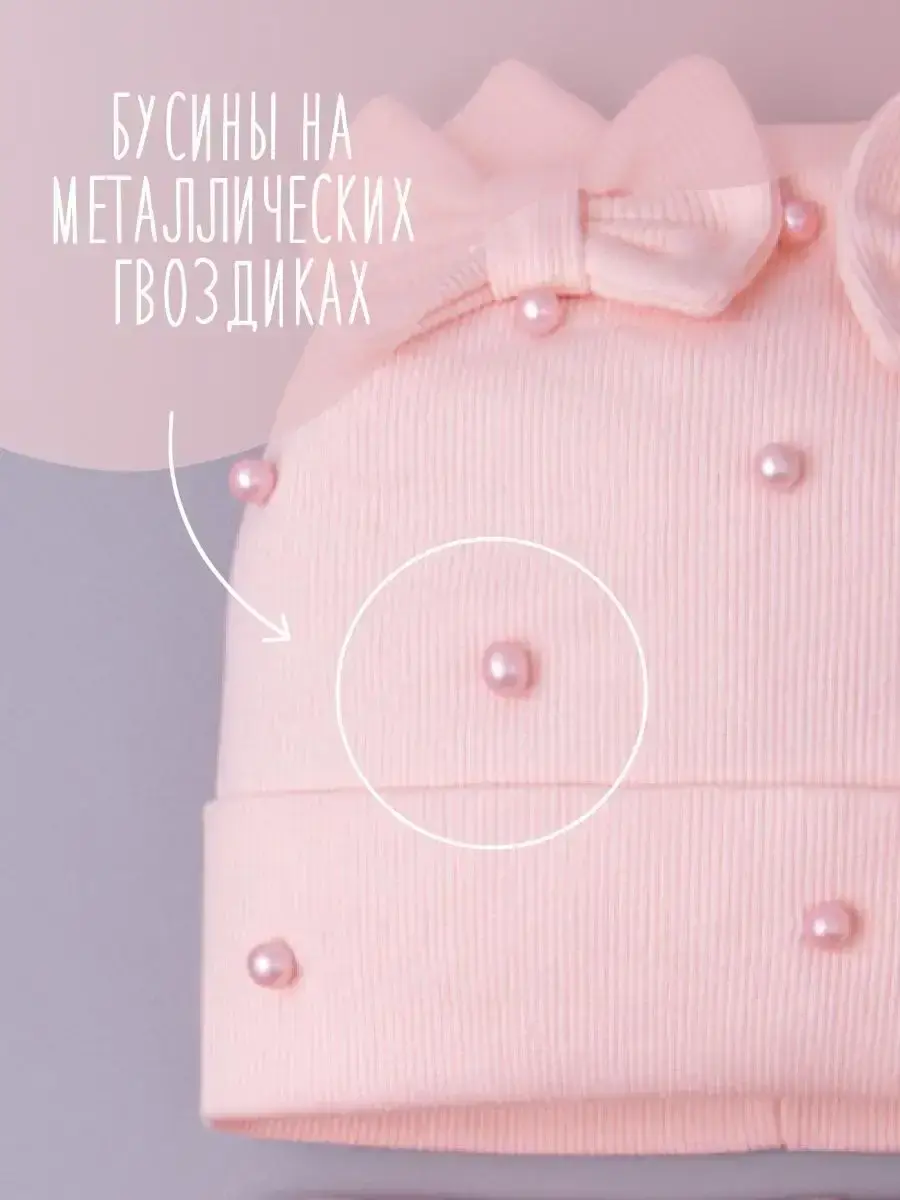 Бусины надежно прибиты к шапке — это обеспечивает их прочную фиксацию и продлевает срок службы изделия. Такой метод крепления предотвращает отрыв бусин даже при активной носке, делая шапку более долговечной.