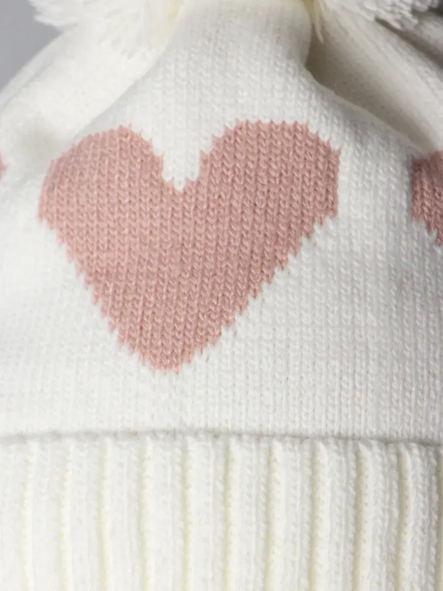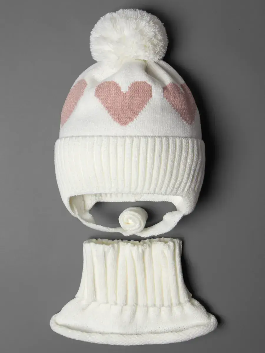 Ищете идеальную шапку со снудом для вашей девочки? Обратите внимание на нашу стильную детскую шапку с манишкой на завязках! Эта очаровательная шапка для девочки выполнена из мягкого и дышащего материала, который обеспечивает комфорт и защиту от прохлады осенних дней. Уникальный дизайн с милым рисунком в виде сердечек и помпоном добавляет игривости и стиля, делая вашу девочку настоящей модницей.