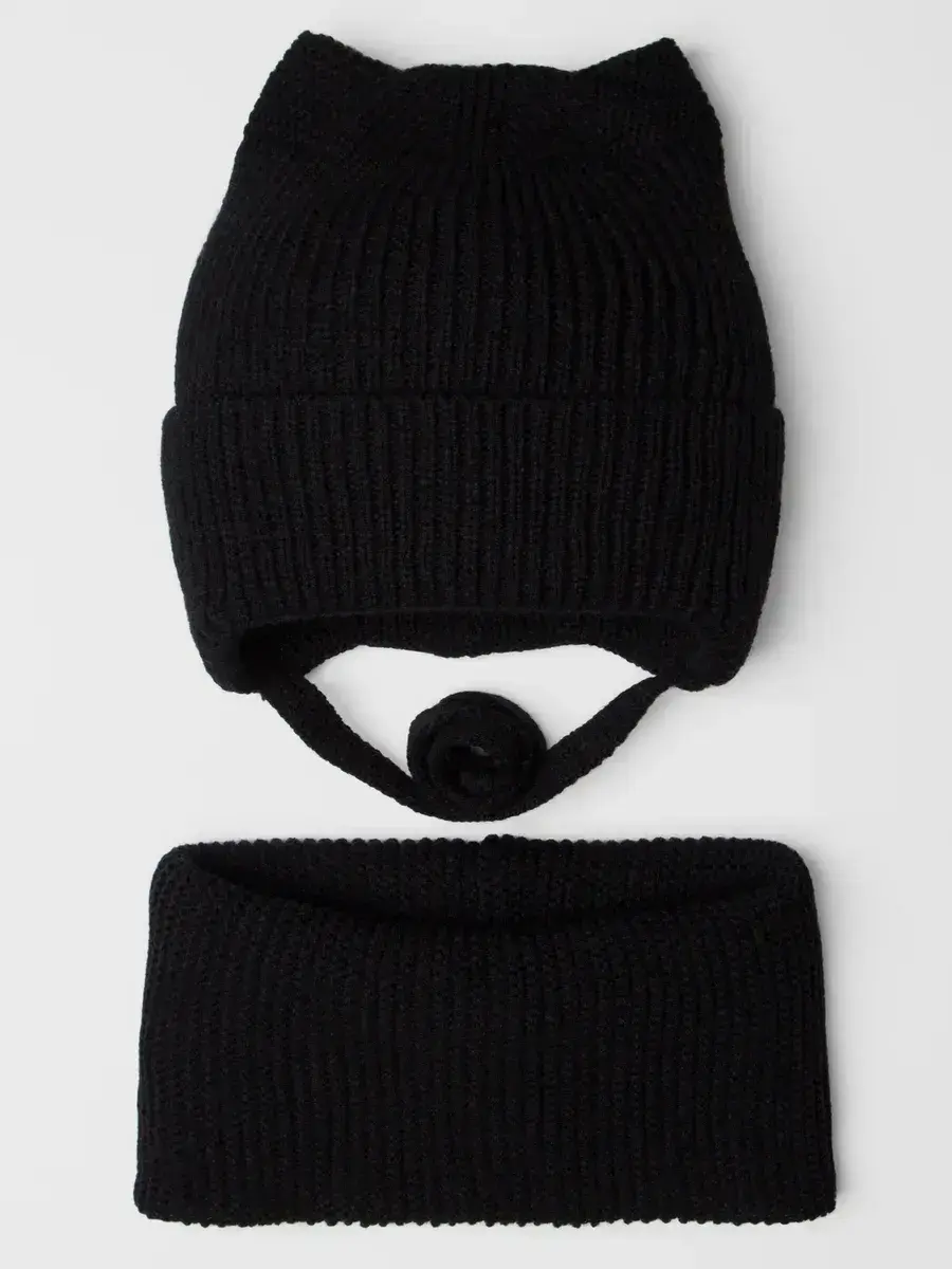 ZO-030/00-0057857/Шапка вязаная для девочки с кошачьими ушками/Черный