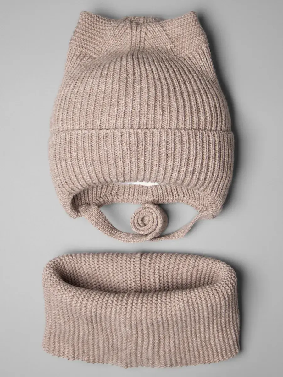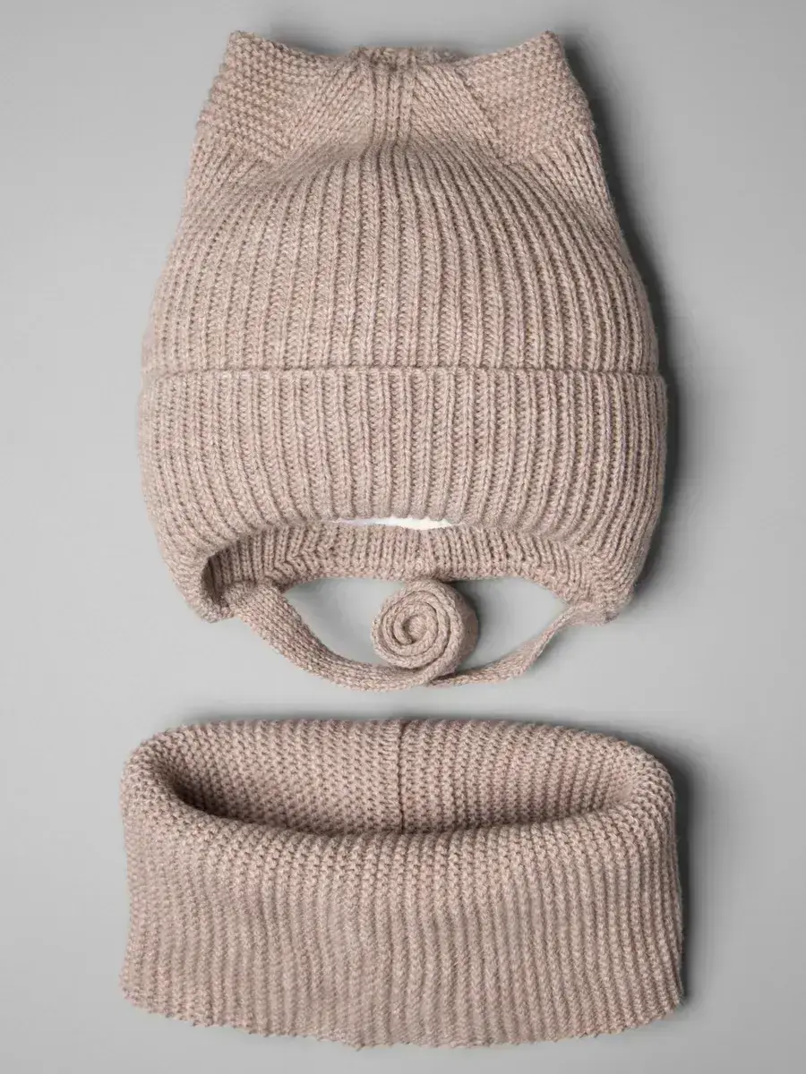 ZO-030/00-0057858/Шапка вязаная для девочки с кошачьими ушками/Бежевый