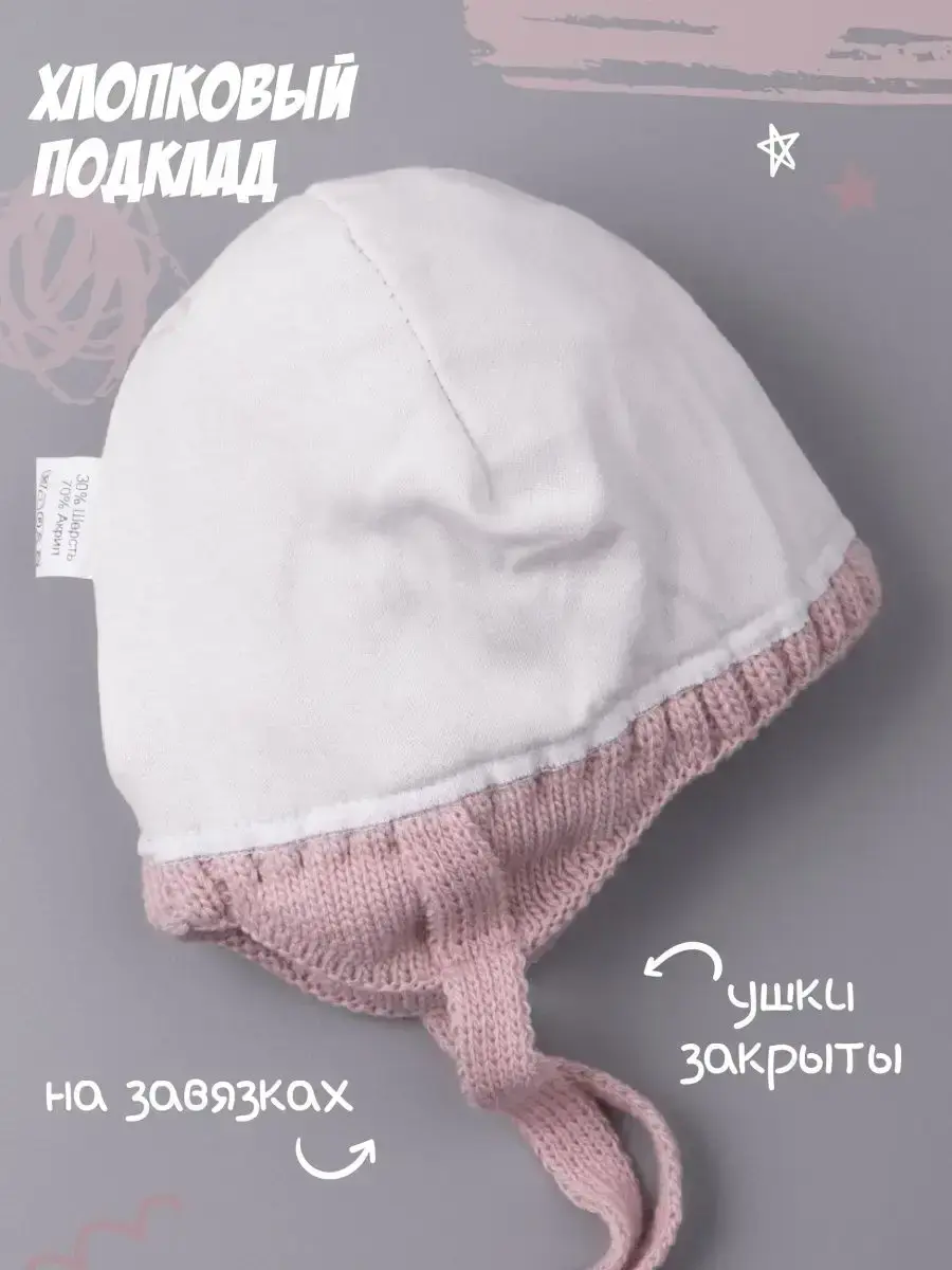 Теплая детская шапочка изготовлена из высококачественной пряжи, хорошо сидит на голове и защищает от холода и ветра. Мягкие завязки плотно фиксируют головной убор и не дают ему смещаться во время активных игр на свежем воздухе. Изделие имеет хлопковую подкладку, которая обеспечивает комфортное ношение и не позволяет голове ребенка вспотеть. Шапка с помпоном подчеркнет индивидуальность Вашего ребенка и станет стильным дополнением к его образу!