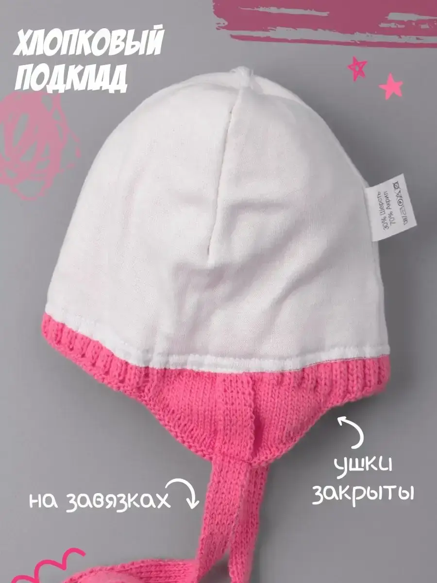 Теплая детская шапочка изготовлена из высококачественной пряжи, хорошо сидит на голове и защищает от холода и ветра. Мягкие завязки плотно фиксируют головной убор и не дают ему смещаться во время активных игр на свежем воздухе. Изделие имеет хлопковую подкладку, которая обеспечивает комфортное ношение и не позволяет голове ребенка вспотеть. Шапка с помпоном подчеркнет индивидуальность Вашего ребенка и станет стильным дополнением к его образу!