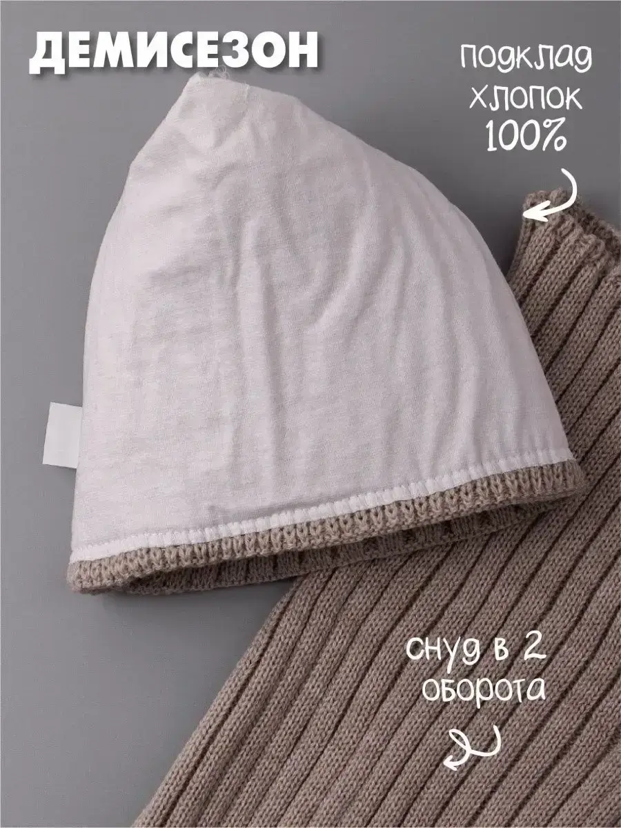 Шапка детская вязаная демисезонная и снуд станут незаменимым дополнением в гардеробе Вашего ребенка на осень и теплую зиму. Головной убор не только защитит от прохлады и ветра, но и красиво завершит стильный образ малыша. Модель представлена в нескольких цветах и поэтому хорошо подойдет любому гардеробу вашей дочки. Широкий размерный ряд рассчитан для детей от трех месяцев до десяти лет. Ушки и съемная бирка на осенней шапочке добавляют индивидуальности и игривости! Выполнен детский комплект из высококачественной пряжи (в составе акрил), которая хорошо подходит для длительной носки, не растягивается и не тускнеет со временем. Снуд вязаный станет прекрасной альтернативой шарфу, его легко надевать и снимать без помощи взрослых. Манишка детская без труда складывается вдвое и надевается под капюшон верхней одежды. Комплект можно носить как вместе, так и отдельно шарф и шапочку. Универсальный дизайн и расцветки прекрасно сочетаются с другими аксессуарами в гардеробе. Наша осенняя шапка для девочки со снудом просто незаменимая вещь для школы, детского садика и прогулок на свежем воздухе.