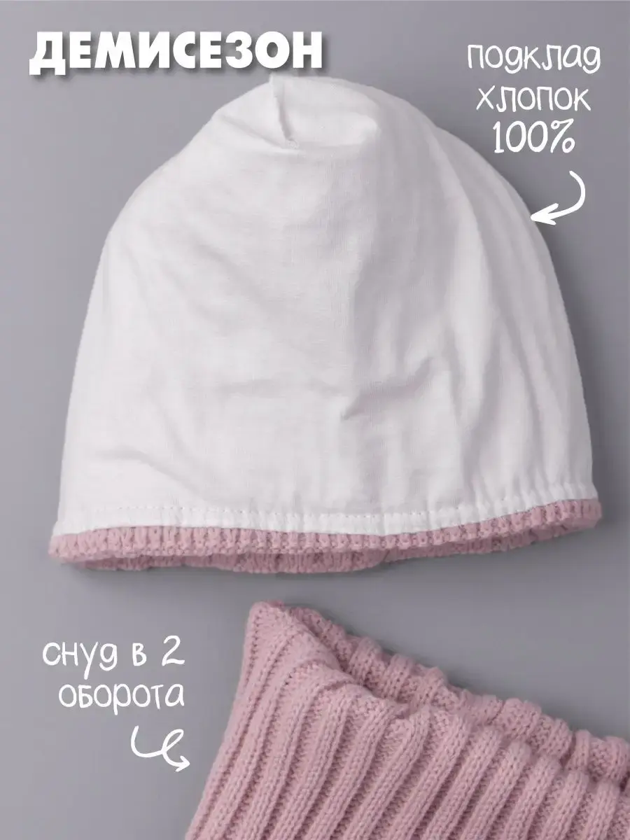 Шапка детская вязаная демисезонная и снуд станут незаменимым дополнением в гардеробе Вашего ребенка на осень и теплую зиму. Головной убор не только защитит от прохлады и ветра, но и красиво завершит стильный образ малыша. Модель представлена в нескольких цветах и поэтому хорошо подойдет любому гардеробу вашей дочки. Широкий размерный ряд рассчитан для детей от трех месяцев до десяти лет. Ушки и съемная бирка на осенней шапочке добавляют индивидуальности и игривости! Выполнен детский комплект из высококачественной пряжи (в составе акрил), которая хорошо подходит для длительной носки, не растягивается и не тускнеет со временем. Снуд вязаный станет прекрасной альтернативой шарфу, его легко надевать и снимать без помощи взрослых. Манишка детская без труда складывается вдвое и надевается под капюшон верхней одежды. Комплект можно носить как вместе, так и отдельно шарф и шапочку. Универсальный дизайн и расцветки прекрасно сочетаются с другими аксессуарами в гардеробе. Наша осенняя шапка для девочки со снудом просто незаменимая вещь для школы, детского садика и прогулок на свежем воздухе.