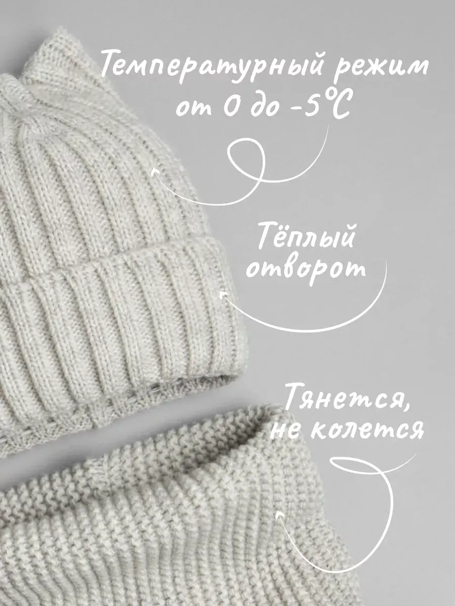 Шапка для девочки с ушками и снуд - это отличное решение для Вашего ребенка на осень и зиму! Шапочка зимняя с ушками для девочки дополнена подкладкой из флиса, благодаря чему очень мягкая и комфортная. Комплект детский с шапкой выполнен из высококачественной пряжи (в составе гипоаллергенный акрил, акрил), что создает стильную комбинацию из современного дизайна и практичности. Манишка детская станет прекрасной альтернативой шарфу, ее можно надевать как под верхнюю одежду, так и под капюшон. Снуд вязаный для девочки не колется и не магнитится. Широкий отворот шапки для малышей позволяет менять глубину посадки, тем самым создавать новые образы.
