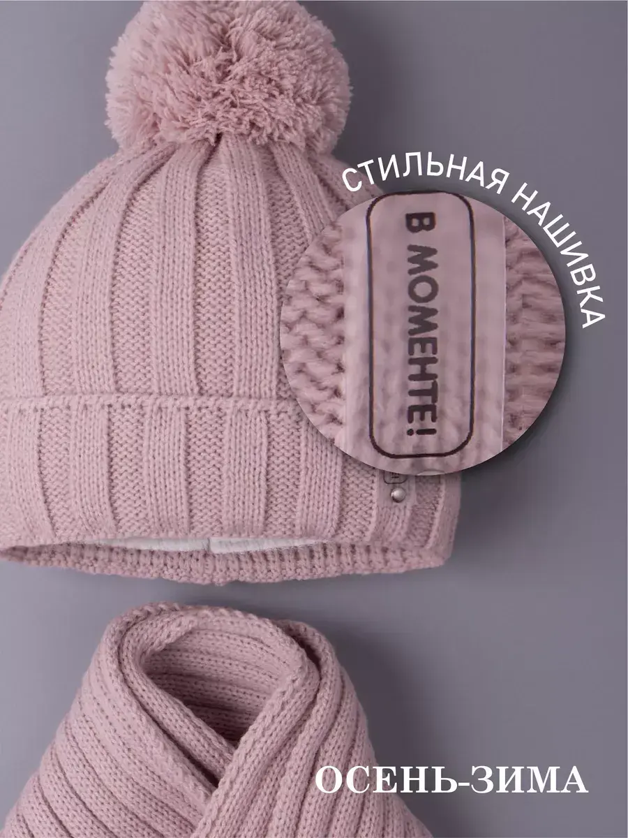 ШапкадетскаясбубономВМОМЕНТЕ!+шарф00-0028754
