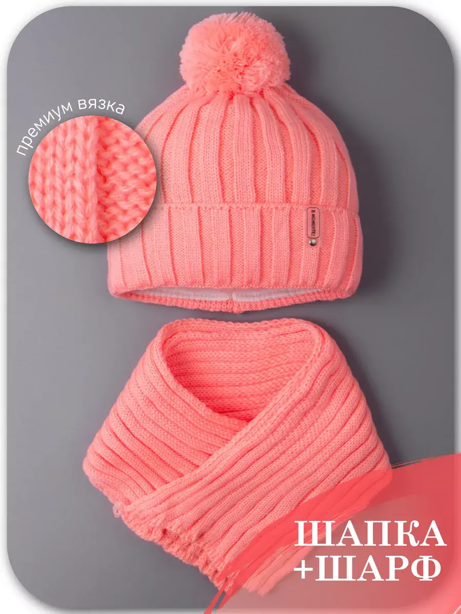 ШапкадетскаясбубономВМОМЕНТЕ!+шарф00-0029012