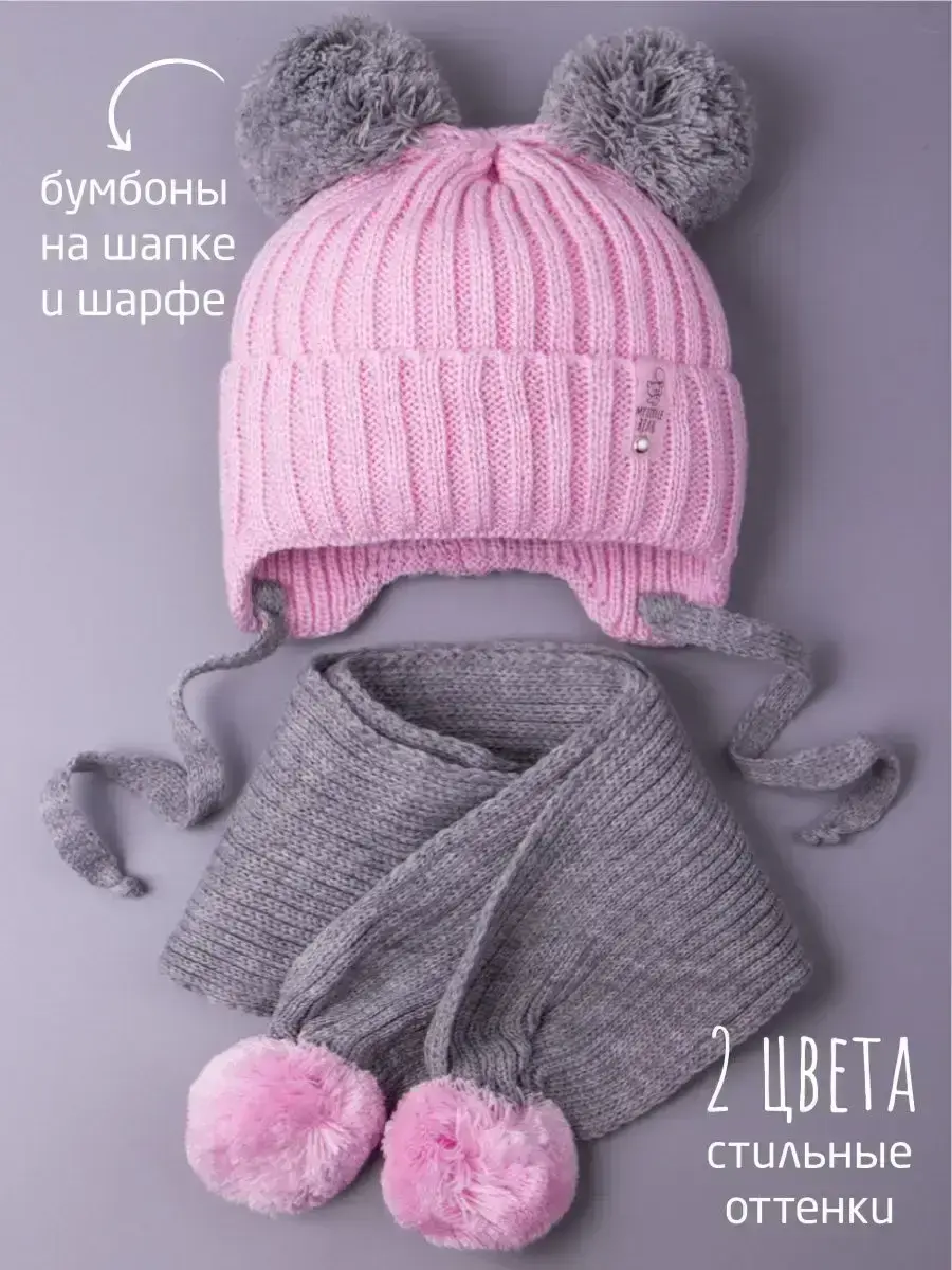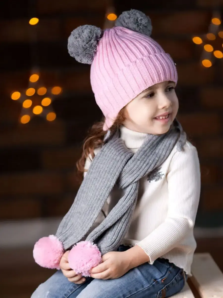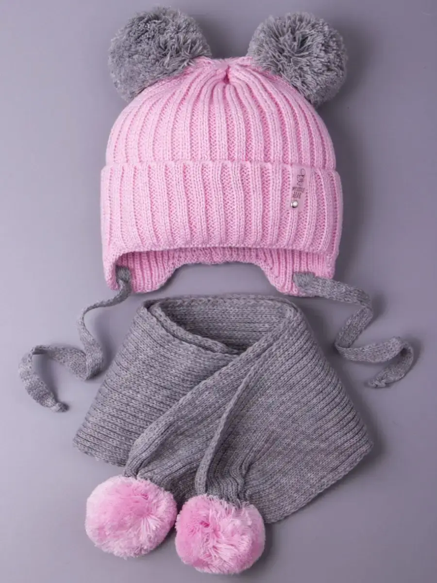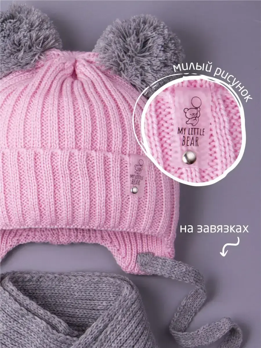 Шапка для девочки на завязках и шарф станут незаменимыми аксессуарами для вашей дочки на осень и теплую зиму. Шапка осенняя детская отлично подойдет к любому осеннему гардеробу. Детский демисезонный комплект отлично подходит для прогулок на свежем воздухе, активных игр на улице, школы и детского садика. Универсальный размер и эластичная резинка обеспечивают надежную посадку на голове, не сковывая движений. Стильная шапка для девочки демисезонная — идеальный аксессуар для демисезонного периода. Изготовленная из мягкого и теплого материала, она обеспечит комфорт и защиту от холода. Теплая шапка на осень с завязками дополнена хлопковым подкладом, который комфортен для ежедневного использования. Шарф детский с помпонами отлично заменяет снуд или манишку. Благодаря оптимальной длине, его можно носить как под верхней одеждой, так и поверх нее. Съемная прозрачная брошь с изображением медвежонка добавит милого дизайна! Детская шапка с помпонами и снуд будут модным и практичным дополнением к образу ребенка в период межсезонья!