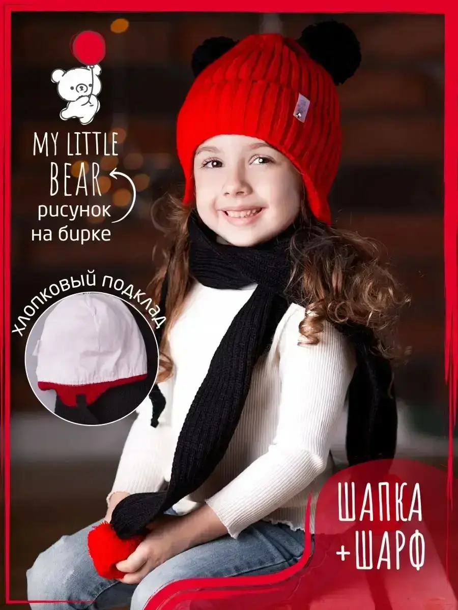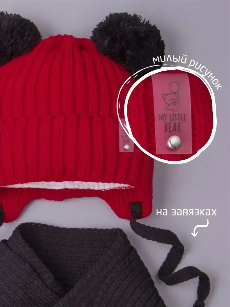 Шапка для девочки на завязках и шарф станут незаменимыми аксессуарами для вашей дочки на осень и теплую зиму. Шапка осенняя детская отлично подойдет к любому осеннему гардеробу. Детский демисезонный комплект отлично подходит для прогулок на свежем воздухе, активных игр на улице, школы и детского садика. Универсальный размер и эластичная резинка обеспечивают надежную посадку на голове, не сковывая движений. Стильная шапка для девочки демисезонная — идеальный аксессуар для демисезонного периода. Изготовленная из мягкого и теплого материала, она обеспечит комфорт и защиту от холода. Теплая шапка на осень с завязками дополнена хлопковым подкладом, который комфортен для ежедневного использования. Шарф детский с помпонами отлично заменяет снуд или манишку. Благодаря оптимальной длине, его можно носить как под верхней одеждой, так и поверх нее. Съемная прозрачная брошь с изображением медвежонка добавит милого дизайна! Детская шапка с помпонами и снуд будут модным и практичным дополнением к образу ребенка в период межсезонья!