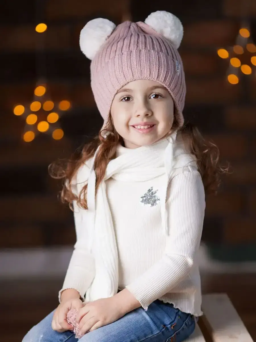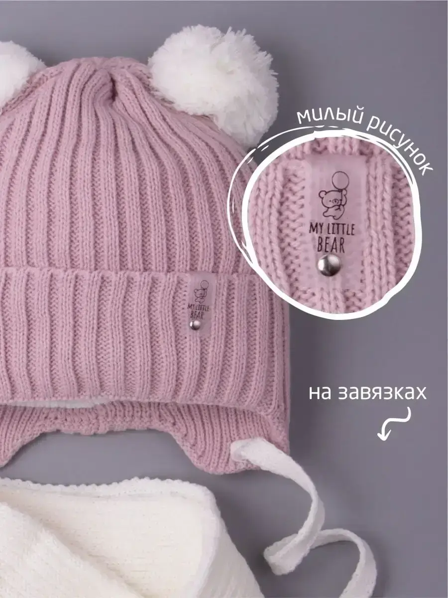 Шапка для девочки на завязках и шарф станут незаменимыми аксессуарами для вашей дочки на осень и теплую зиму. Шапка осенняя детская отлично подойдет к любому осеннему гардеробу. Детский демисезонный комплект отлично подходит для прогулок на свежем воздухе, активных игр на улице, школы и детского садика. Универсальный размер и эластичная резинка обеспечивают надежную посадку на голове, не сковывая движений. Стильная шапка для девочки демисезонная — идеальный аксессуар для демисезонного периода. Изготовленная из мягкого и теплого материала, она обеспечит комфорт и защиту от холода. Теплая шапка на осень с завязками дополнена хлопковым подкладом, который комфортен для ежедневного использования. Шарф детский с помпонами отлично заменяет снуд или манишку. Благодаря оптимальной длине, его можно носить как под верхней одеждой, так и поверх нее. Съемная прозрачная брошь с изображением медвежонка добавит милого дизайна! Детская шапка с помпонами и снуд будут модным и практичным дополнением к образу ребенка в период межсезонья!