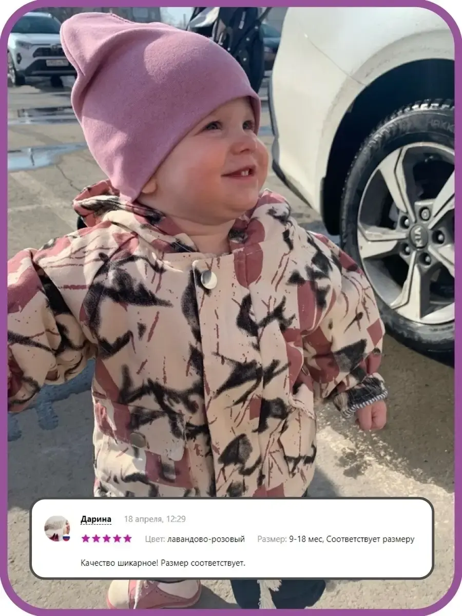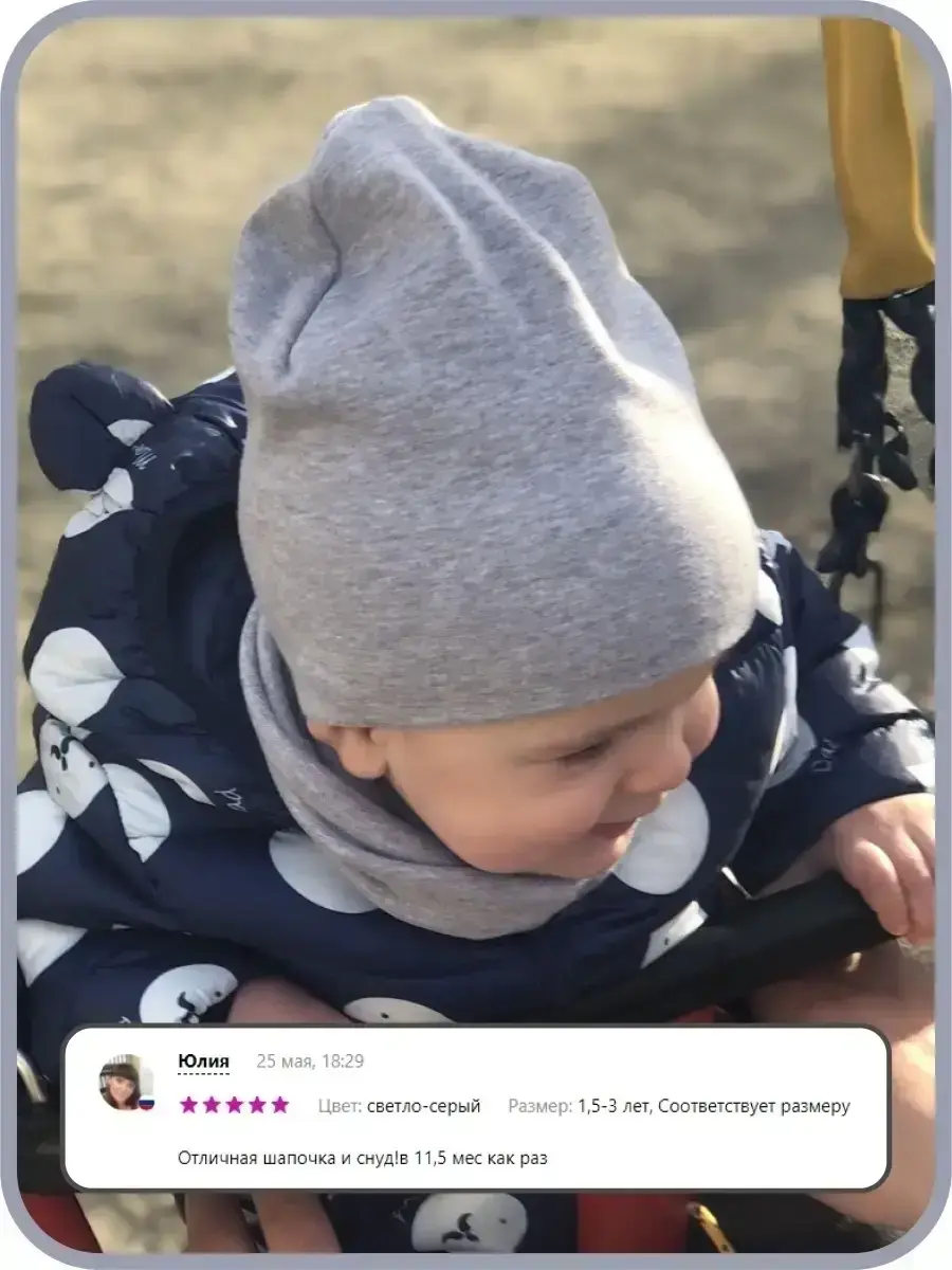 Комплект разработан для демисезонных прогулок: он сохраняет тепло в прохладную осеннюю погоду, не перегревает, позволяет коже "дышать" и не вызывает раздражения. Отлично подходит под любую верхнюю одежду: куртку, ветровку, комбинезон или пальто.