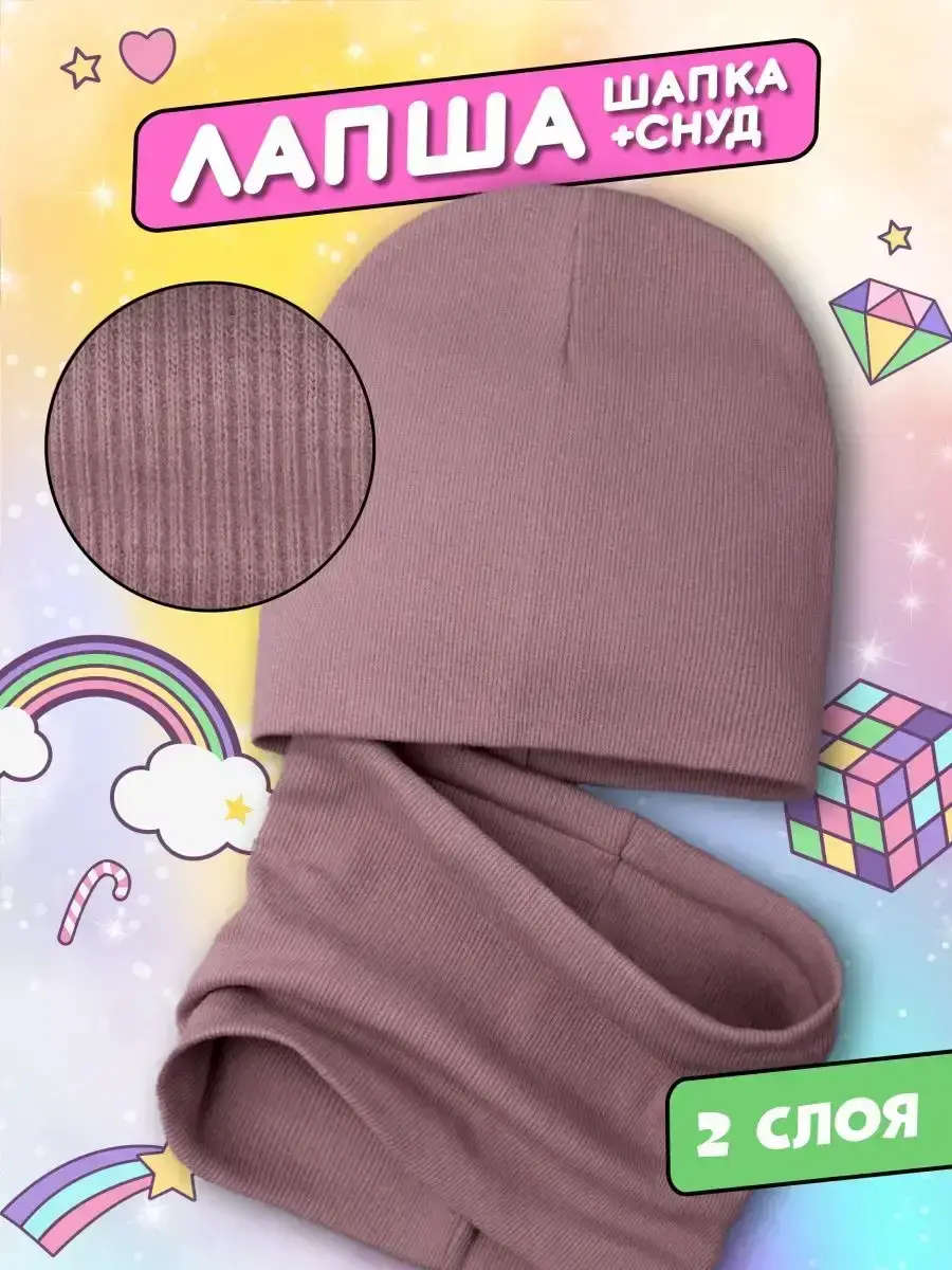 Тонкая шапка для девочки и уютный снуд - отличный выбор для демисезонных прогулок. Головной убор выполнен в технике вязка-лапша, что придает особую текстуру. Шапочка вязаная, но не плотная, поэтому комфортно сидит на голове весь день.