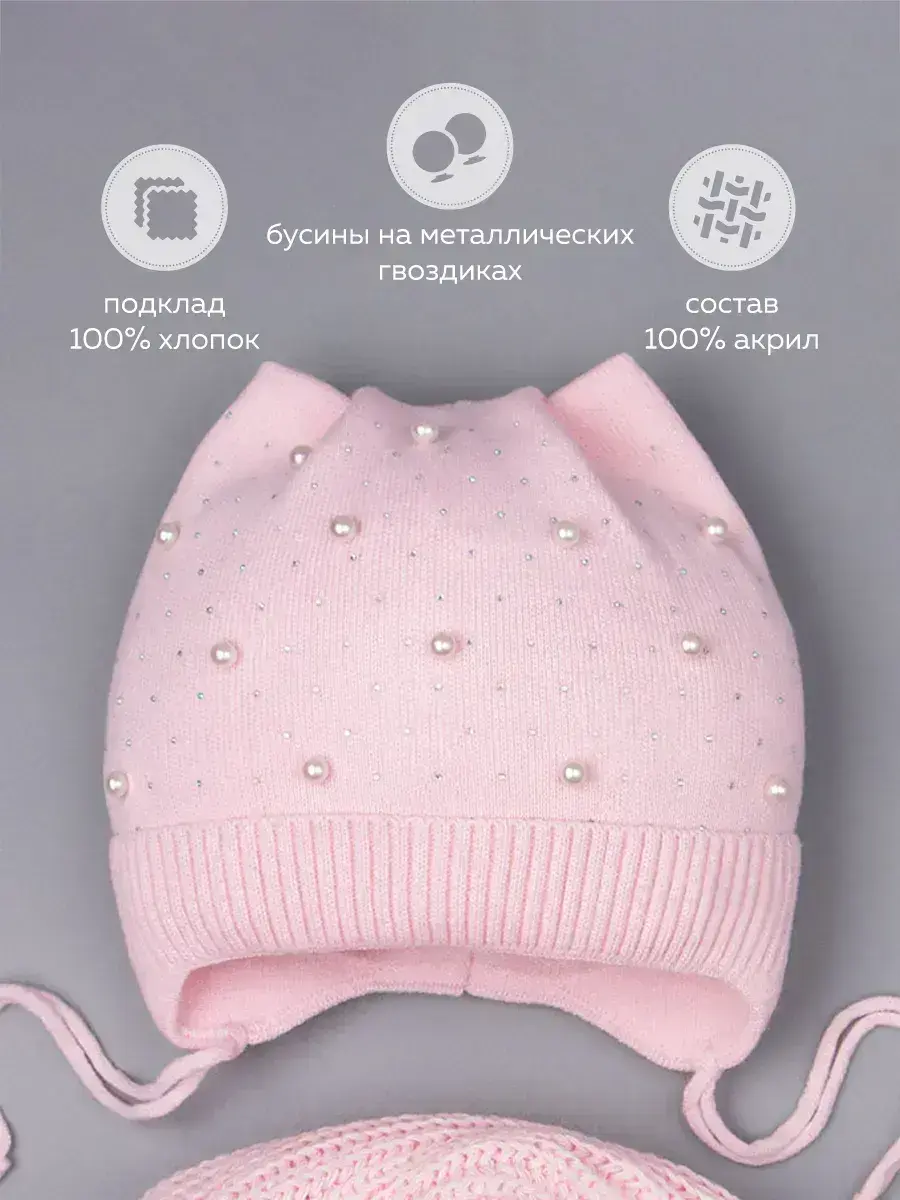Шапка для девочки на завязках и снуд от бренда Ok Top - это идеальный базовый комплект на осень и теплую зиму. Модель подойдет для малышек от трех месяцев до десяти лет. Демисезонный головной убор декорирован стразами, бусинами и ушками, что непременно добавит нежности образу маленькой принцессы! Теплый набор рассчитан на температурный режим от 0 до -5С. Шапка детская дополнена подкладкой из натурального хлопка, благодаря чему голова малыша не будет потеть, а находиться в ней во время прогулок будет комфортно. Модель отлично сочетается с любым гардеробом юной модницы! Приятная на ощупь осенняя шапочка обладает хорошей эластичностью, но при этом не растягивается после долгой носки. Мягкие завязки прекрасно фиксируют, не оставляя следов на коже. Снуд для девочки хорошо тянется и легко надевается в два оборота под капюшон верхней одежды. Вязаный комплект детский подходит для активного отдыха на свежем воздухе, а также для повседневной носки в детский сад и школу. Для того, чтобы изделие радовало Вас дольше, мы рекомендуем бережную стирку при t не более 30С.
